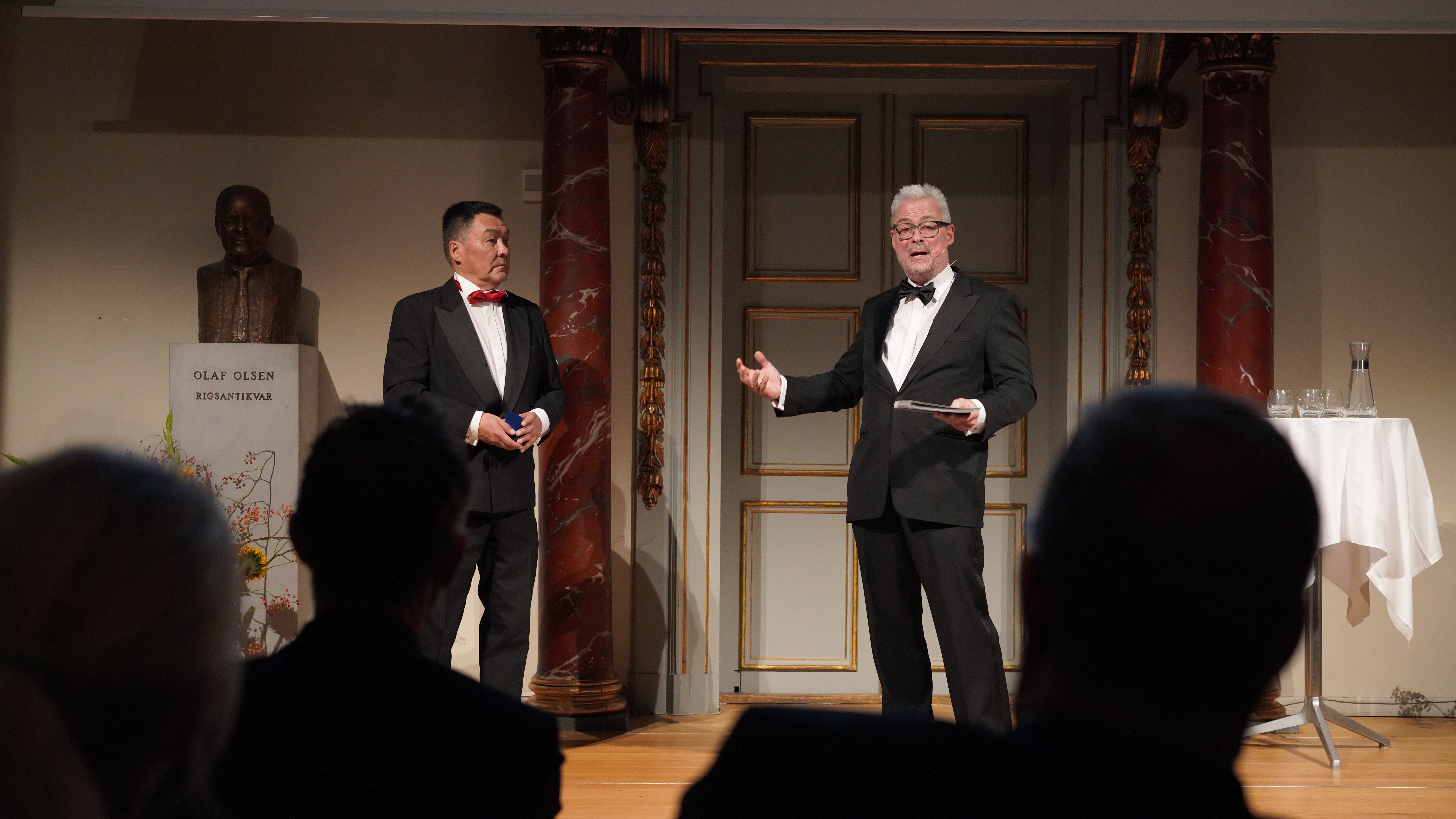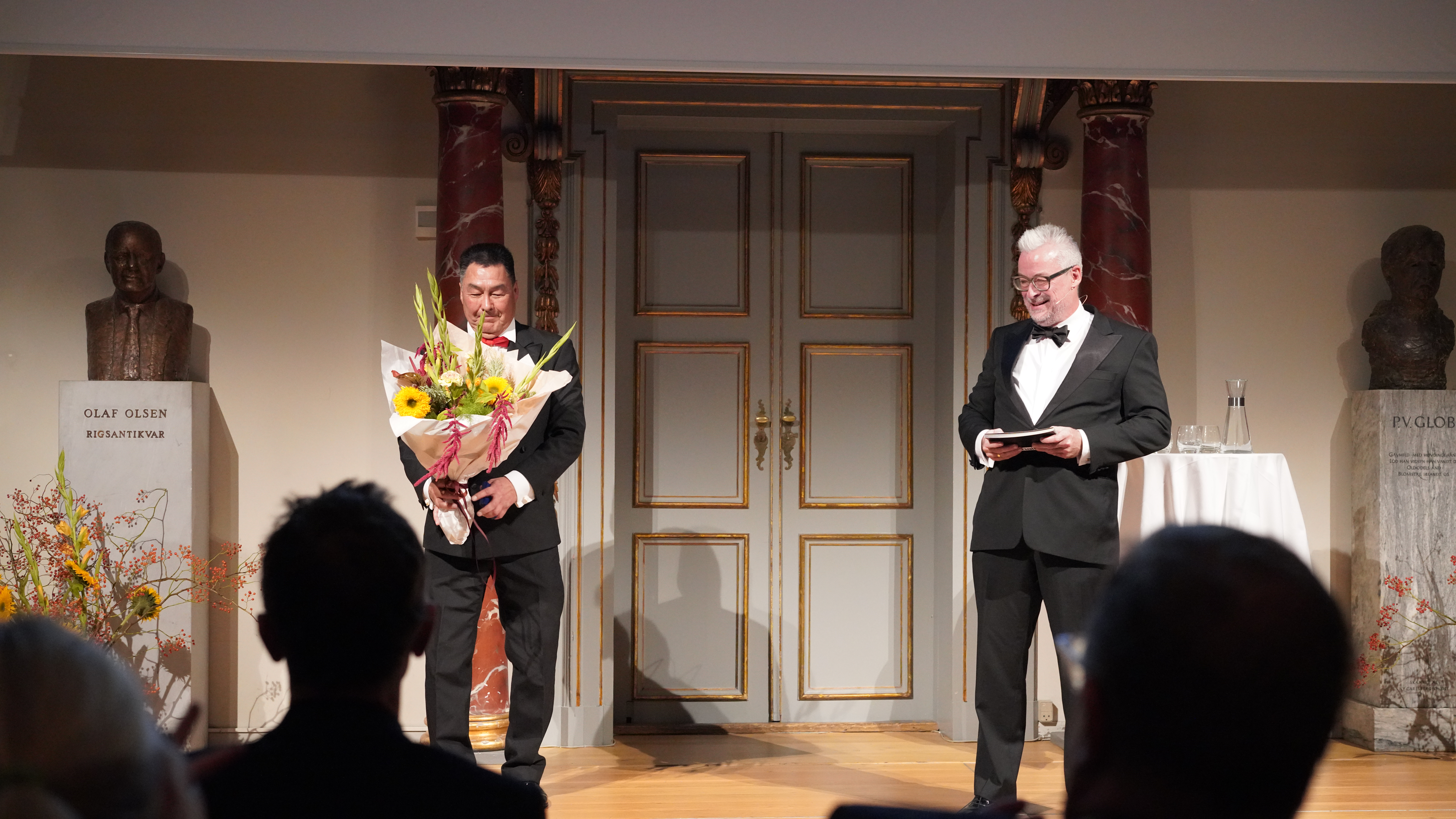 Rane Willerslev overrakte i går medaljen til Daniel Thorleifsen under gallaarrangementet Forskningens Aften på Nationalmuseet, hvor museet hylder forskningens bidrag. Her er der foredrag om den seneste og mest banebrydende forskning fra museets forskere, og i år var der også gæste-oplæg fra Christian Koch Madsen, Ph.d. og souschef ved Grønlands Nationalmuseum og Arkiv.
