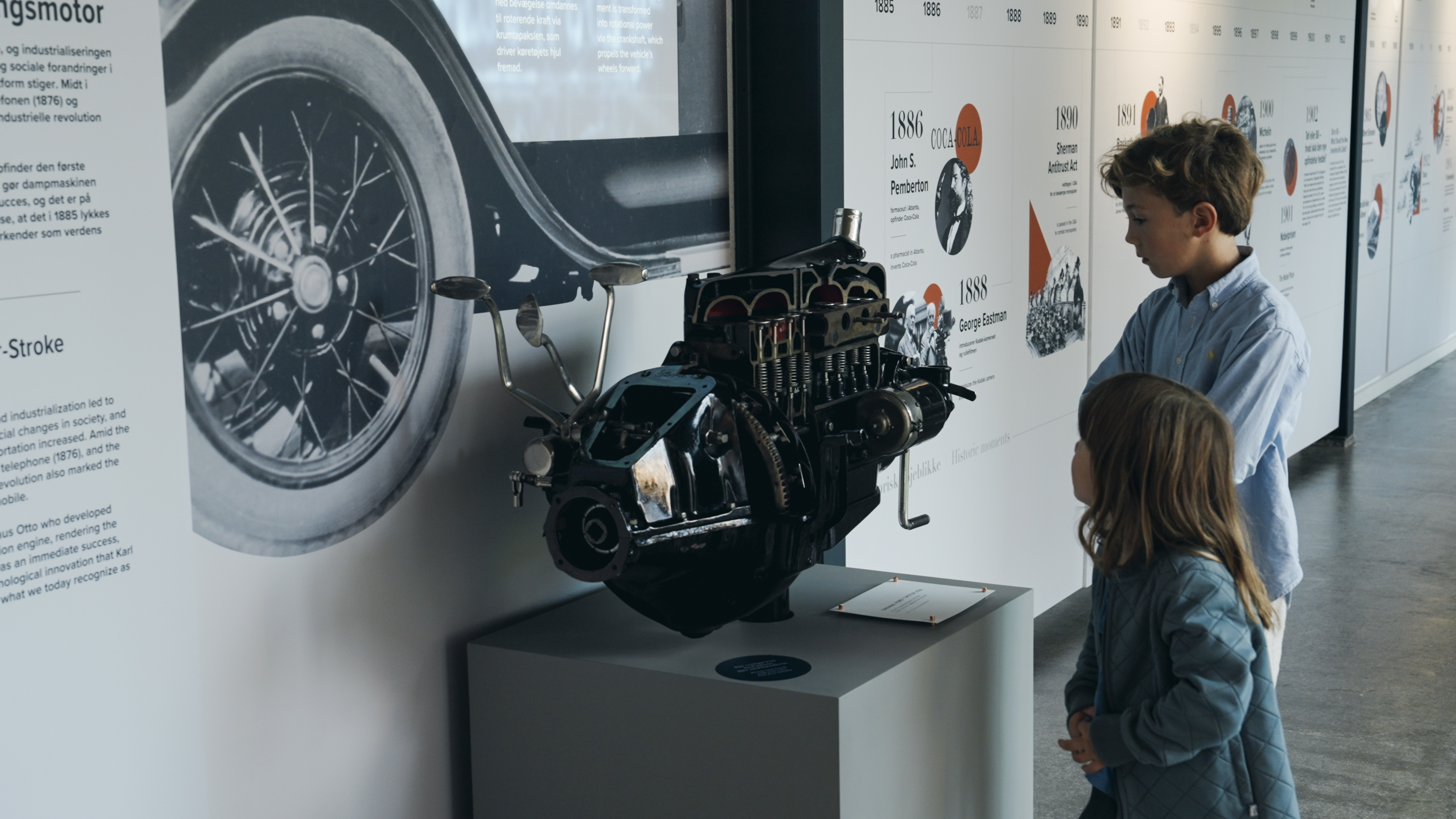 50 meter sjov og lærerigt indblik der starter fra den første dampmaskine til nutidens moderne biler.