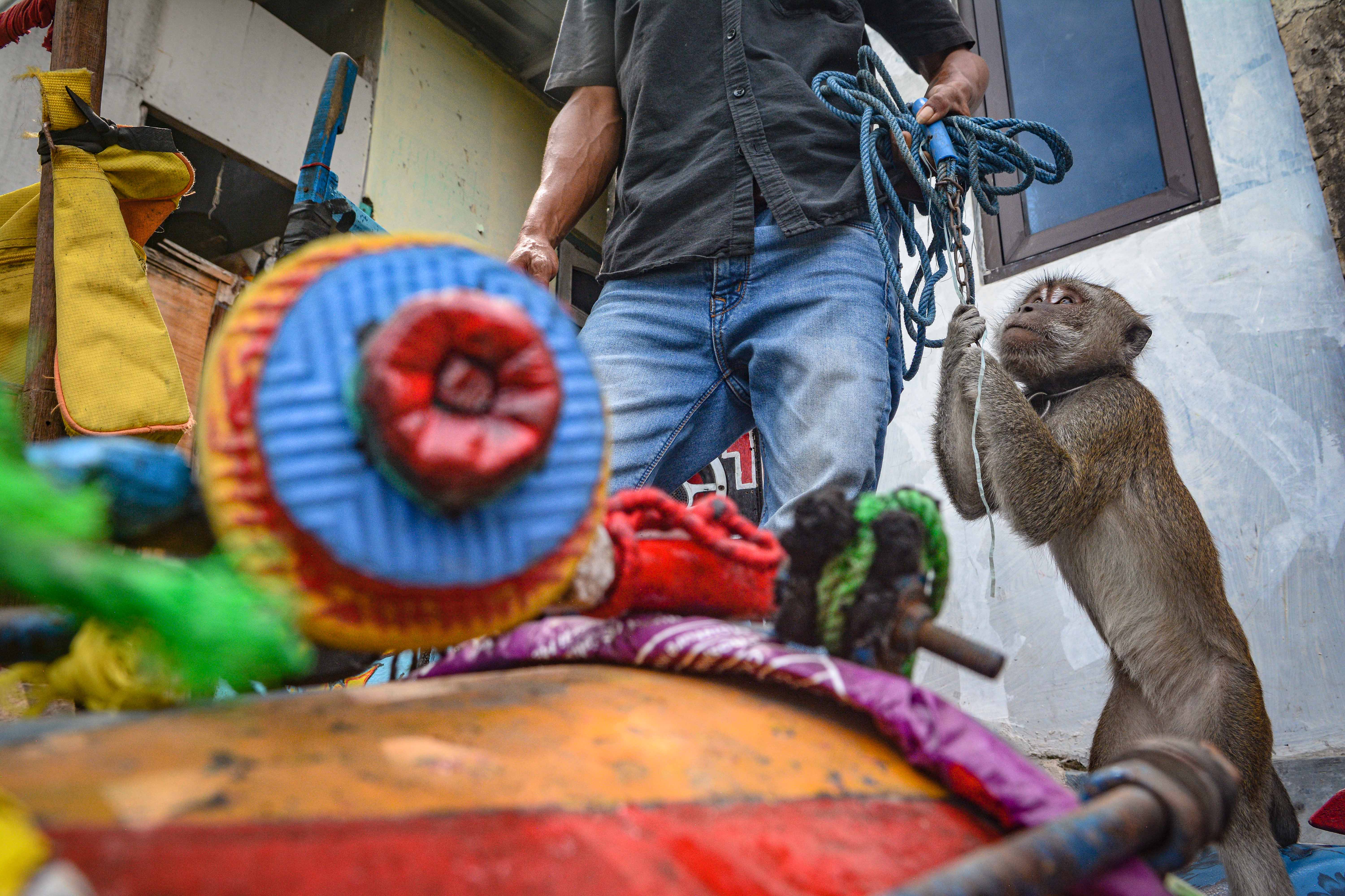 For at blive lydige underholdningsdyr er aberne blevet trænet med brutal disciplin, hvor de er blevet fysisk mishandlet og mentalt nedbrudt. Blandt andet har aberne lært at stå på bagbenene med en metode, hvor deres hænder bindes på ryggen, mens de samtidig får en kæde om halsen, så de tvinges til at stå på bagbenene for at kunne trække vejret.