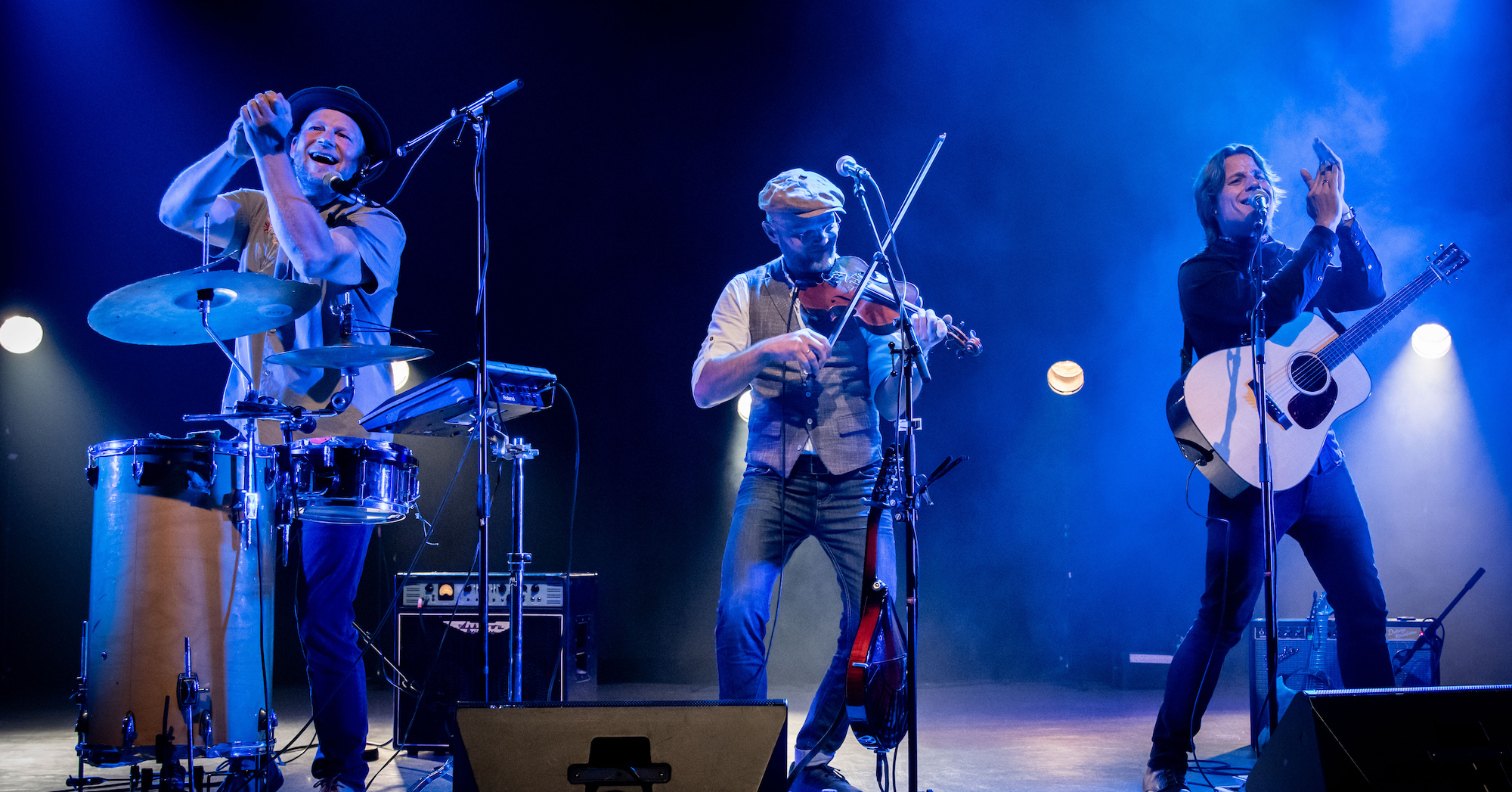 Jørgen Dickmeiss; violin, mandolin, bodhran, sang, Mikkel Grue; akustisk guitar, elektrisk guitar, dobro, sang og Jens Kristian Dam; trommer, perkussion, synths og sang.