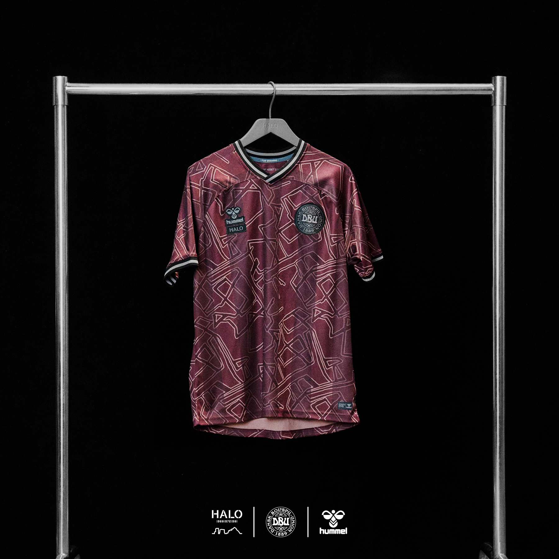 Den nye landsholdstrøje er designet i en dyb bordeaux farve og forener HALOs scandinaviske designstil med fodboldens stolte arv. Trøjens unikke mønster er inspireret af faldskærmsudspring og trækker tråde tilbage til HALOs grundlægger, Helge Petersen, der fik idéen til brandet under et faldskærmsudspring i 1981.