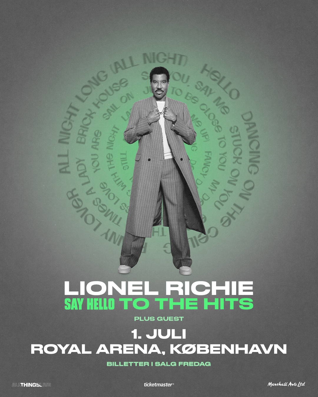 21. oktober - Den internationale superstjerne Lionel Richie har nettop annonceret sin europæiske headliner tour ‘Say Hello To The Hits’. Den prisvindende musiker, der er kendt for sin smooth vokal og tidløse klassikere, er klar til at give en række elektriske og inciterende optrædener.