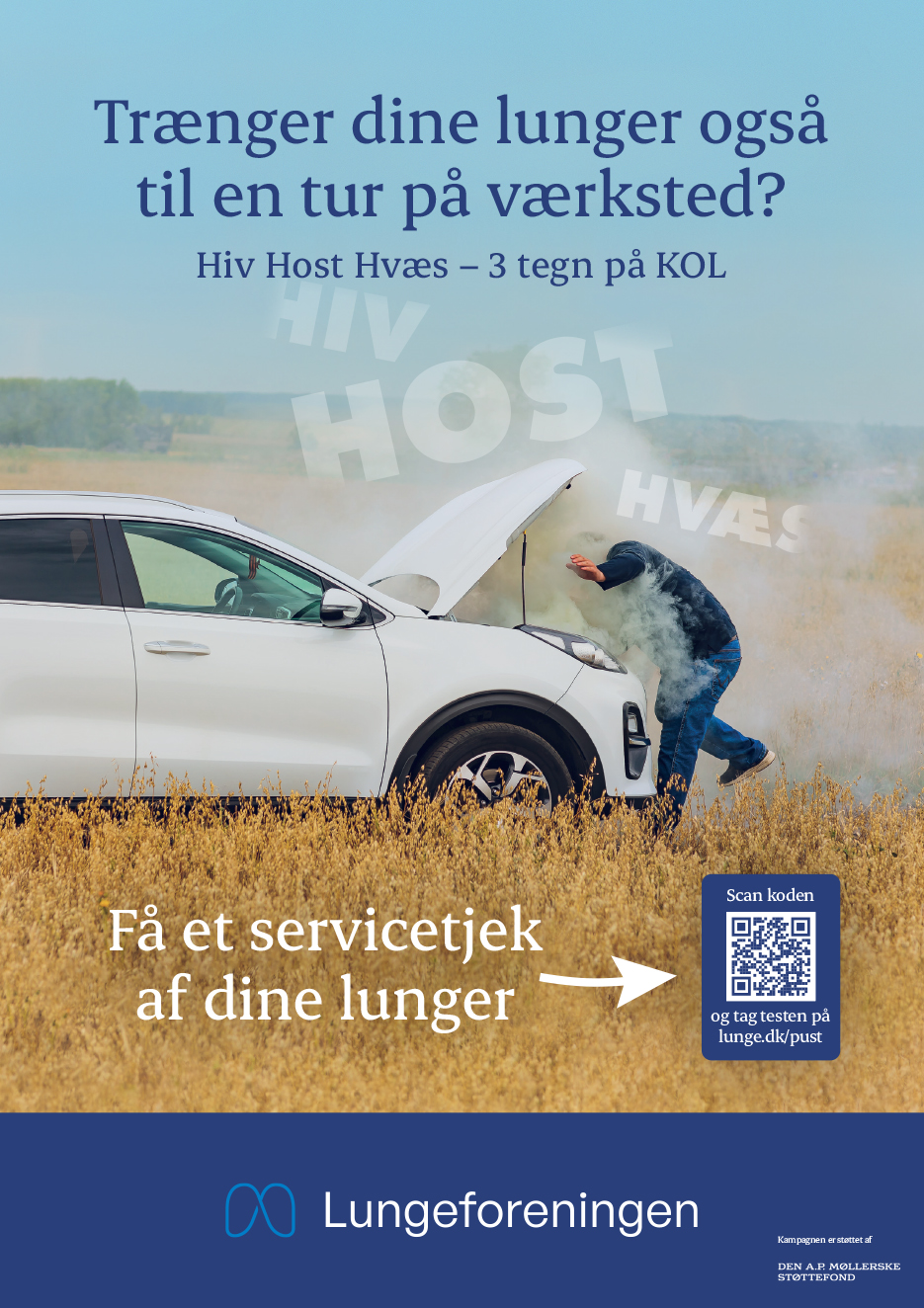 I Lungeforeningens kampagne Hiv, Host, Hvæs i forbindelse med Lungedagen, sammenligner vi vores lunger med en bil. Hvis din bil hostede, hev efter vejret eller havde en hvæsende lyd, så ville du gøre noget ved det og få den på værksted. På tilsvarende vis, skal dine lunger til tjek hos lægen, når du over længere tid hoster, hiver efter vejret eller har en hvæsende vejrtrækning.