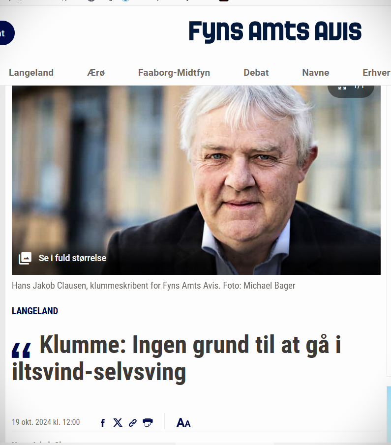 En mangeårig læser af Fyns Amts Avis studsede over en klumme af en tidligere landmand om efterårets omfattende iltsvindstragedie, som den faste klummeskribent påstod at være stærkt overdreven og fagligt set ukorrekt. Han kaldte reaktionerne for ”iltsvind-selvsving” i sin klumme.