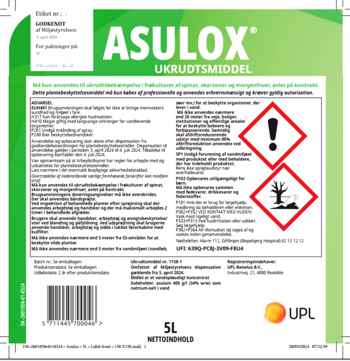 Asulox indeholder sprøjtegiften asulam, der udgør en ganske alvorlig sundhedsrisiko for både mennesker og miljø.