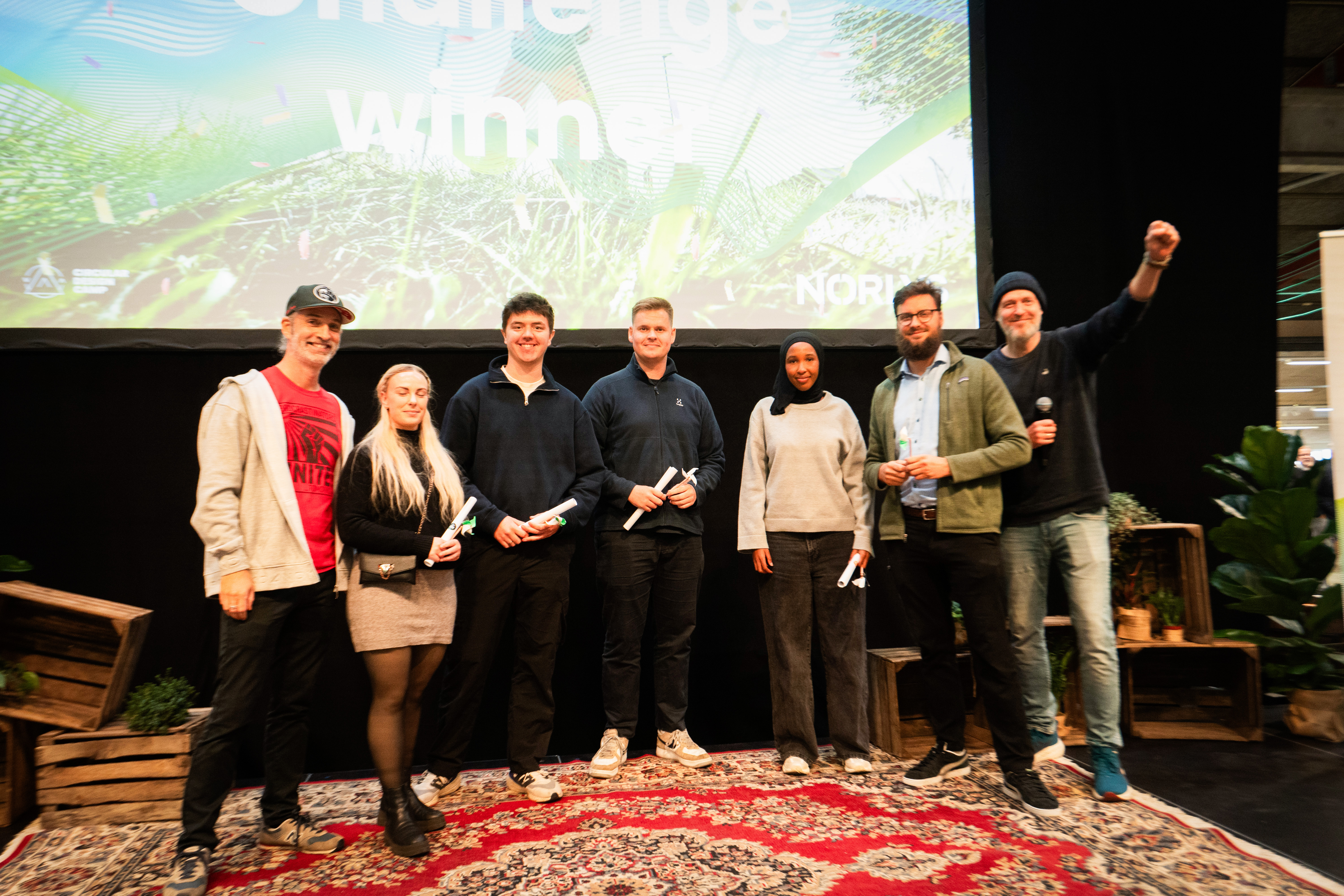 Fra scenen fortæller Svend Elberg Thomsen, klimachef i Norlys, at han har hørt pitch fra fem grupper, som alle havde gode idéer til, hvordan man kan forbedre biodiversiteten på deres mere end tusinde lokationer i Danmark. En udfordring, hvor løsningen skaber reel en impact i virksomheden: ”Vinderen formåede tydeligvis at levere en god løsning for biodiversiteten. Det gjorde alle grupperne faktisk. Men det, der virkelig skilte sig ud for denne vinder, er, at de leverede en løsning, der er ret fleksibel for alle de forskellige lokationer, der varierer i størrelse og geografi”, forklarer Svend Elberg Thomsen og bider mærke i, hvordan de forskellige studieretninger er integreret i løsningen.