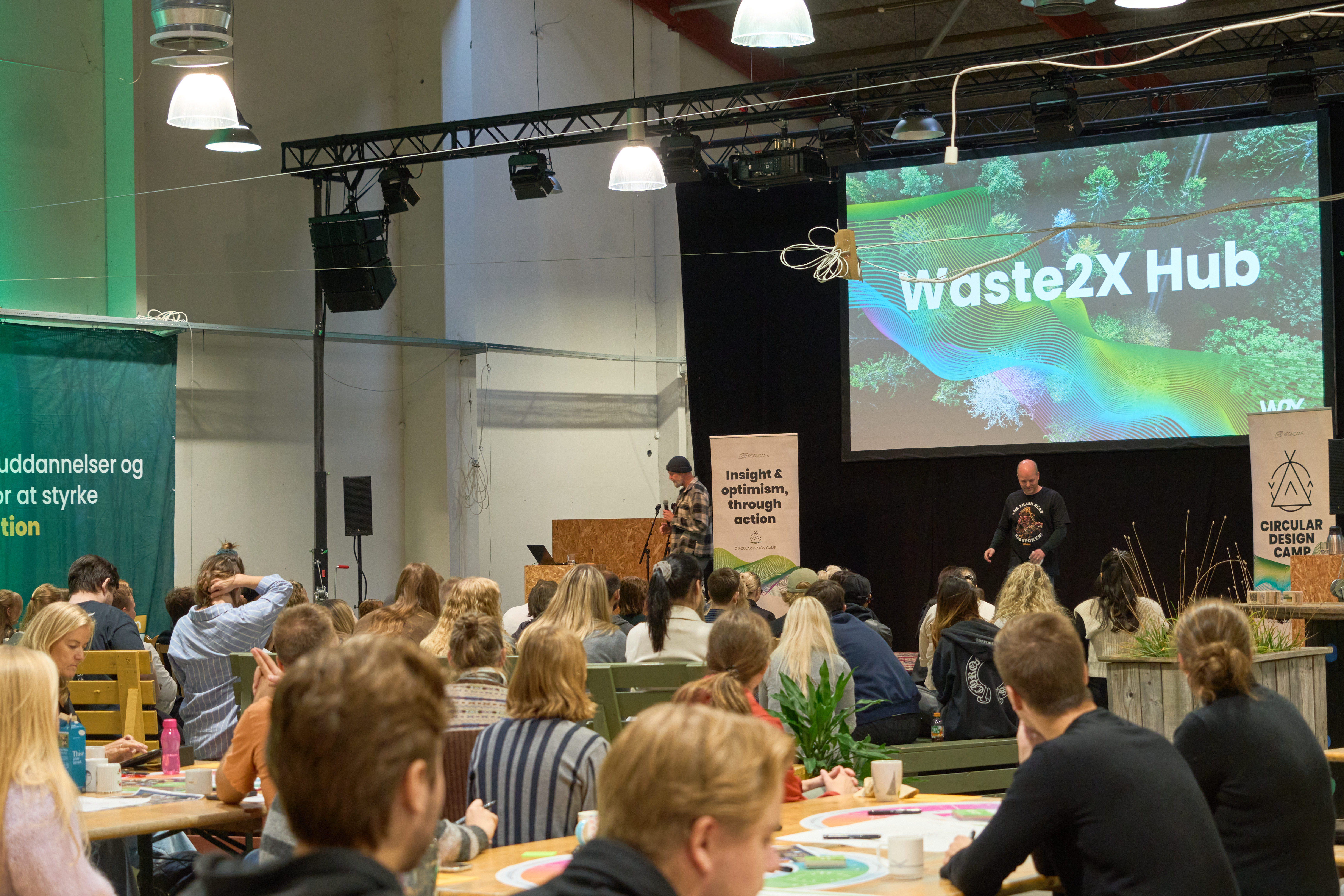 Svaret blev et rungende ’JA!’ på den digitale afstemning, da Mark Hoppe og Jonas Deibjerg fra Regndans skød Circular Design Camp i gang i forbindelse med Green Innovation Week i Skive. Allerede tidligt fra morgen summede det af liv og spænding i de tidligere butiks- og trælastlokaler. Seks forskellige nord- og midtjyske virksomheder inviterede studerende med helt ind i maskinrummet på en grøn udfordring over to dage via campen. Med sig retur fik virksomhederne dugfriske perspektiver og tværfaglige input til løsning af udfordringen.