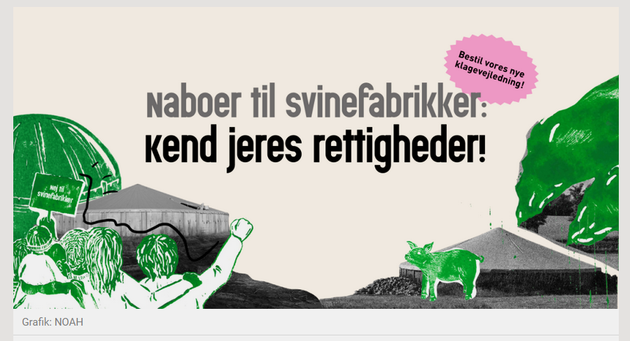 Folk her i Danmark er ved at være godt trætte af lugt og forurening fra de store svinefarme og industrielle landbrug, vi ser flere og flere af. Flere undersøgelser viser, at vi danskere gerne vil have mere og bedre natur, men vores ønsker ser ud til at blive overset, når der træffes politiske beslutninger som den grønne trepart. NOAH opfordrer alle til at tage aktiv del i kampen for at beskytte vores lokale miljøer og natur