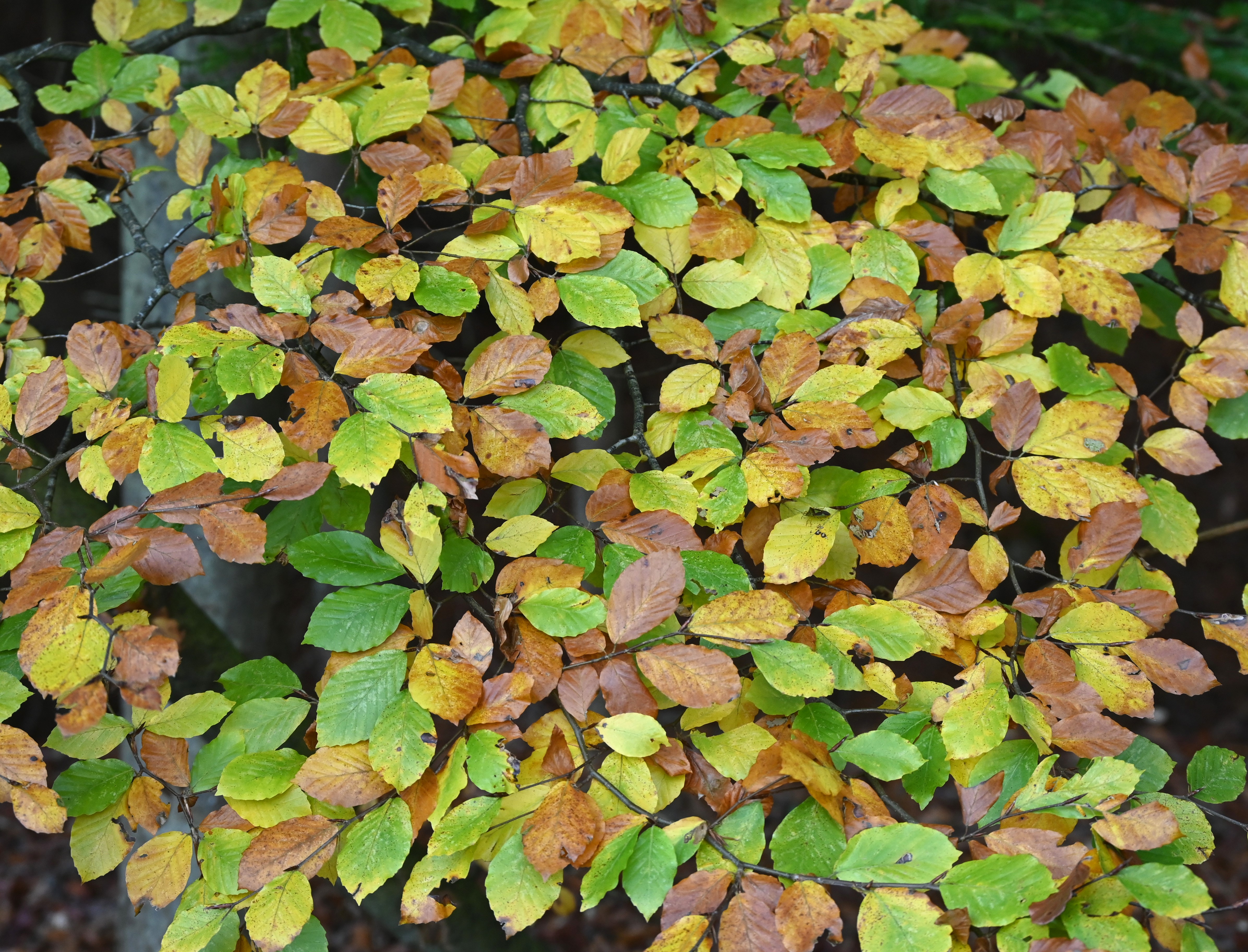 Siden forårets løvspring har hvert eneste blad vendt sig mod solen for at høste det lys, der driver fotosyntesen. Bladene har deres grønne pigmenter fra kæmpemolekylet klorofyl, hovednøglen i livets basisproduktion: Lysenergi + vand + kuldioxid omdannes til sukker og ilt. En proces, oprindeligt etableret af de første cyanobakterier i de gode gamle dage for 3.000 mio. år siden. Også carotenoid er aktivt i fotosyntesen, det er et gult pigment og er f.eks. rigeligt til stede i gulerødder (karotter). Hertil kommer indhold i bladcellerne af andre farvestoffer som det gule lutein og det gulbrune xantofyl. De har beskyttende funktioner, nogle som antioxidanter.