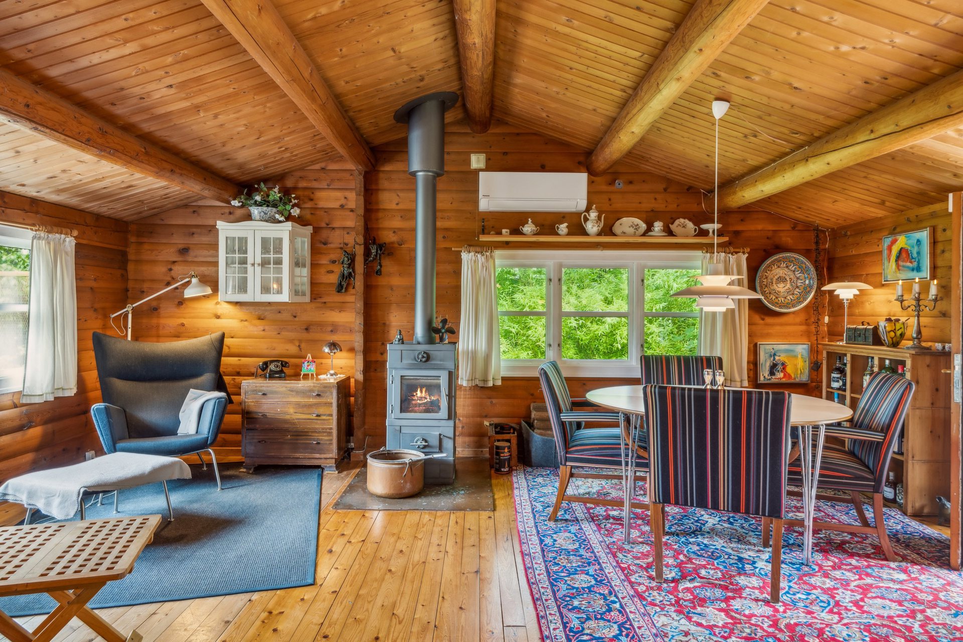 Træ, træ, træ og atter træ. Træ på vægge, træ på lofter og ofte også træ på gulve.