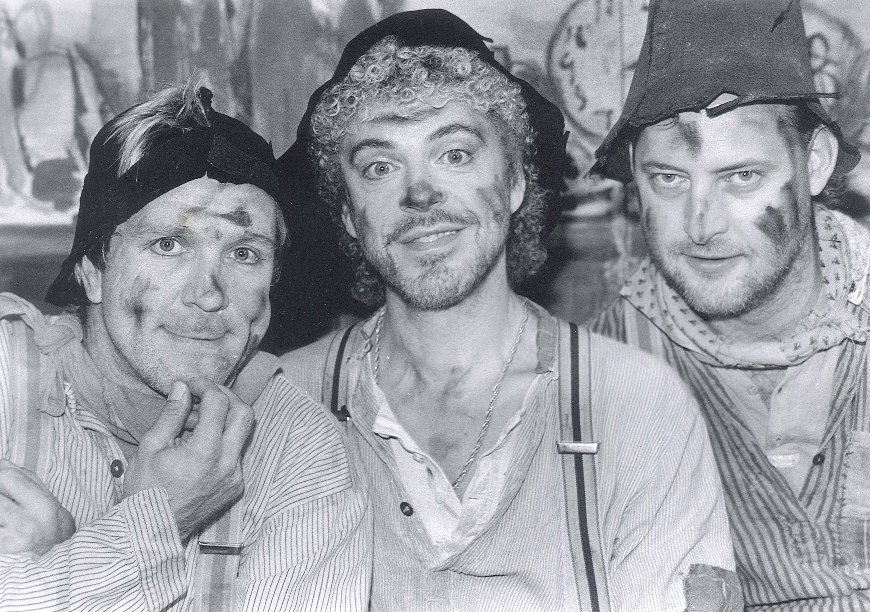 Morten Eisner, Allan Mortensen og Peter Aude som Jonatan, Jesper og Kasper i Folk og Røvere i Kardemomme By på Bellevue Teatret ca. 1986.
