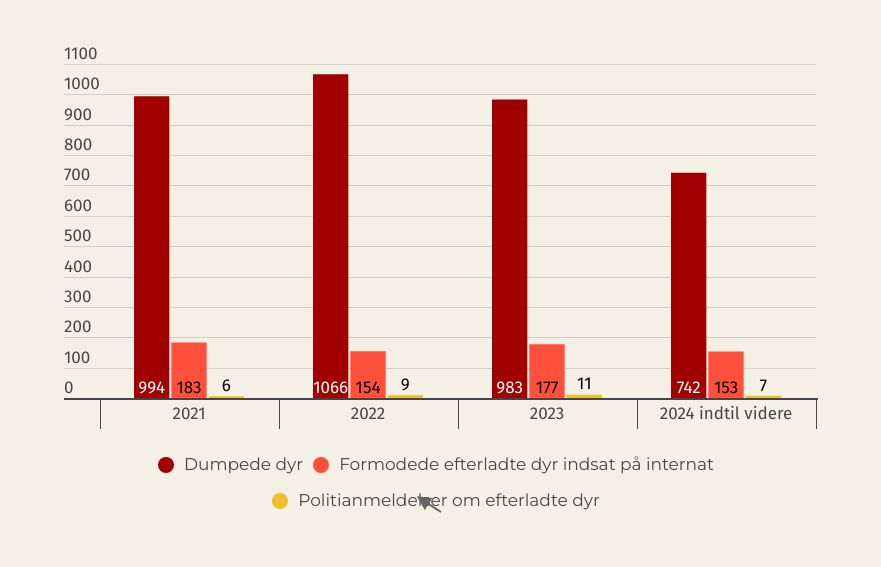 Dyrenes Beskyttelse politianmeldte sidste år elleve dyreejere for at flytte fra deres dyr. I år er der indtil videre anmeldt syv dyreejere. Organisationen peger på, at det manglende lovkrav om mærkning og registrering gør det svært at holde ejerne ansvarlige.