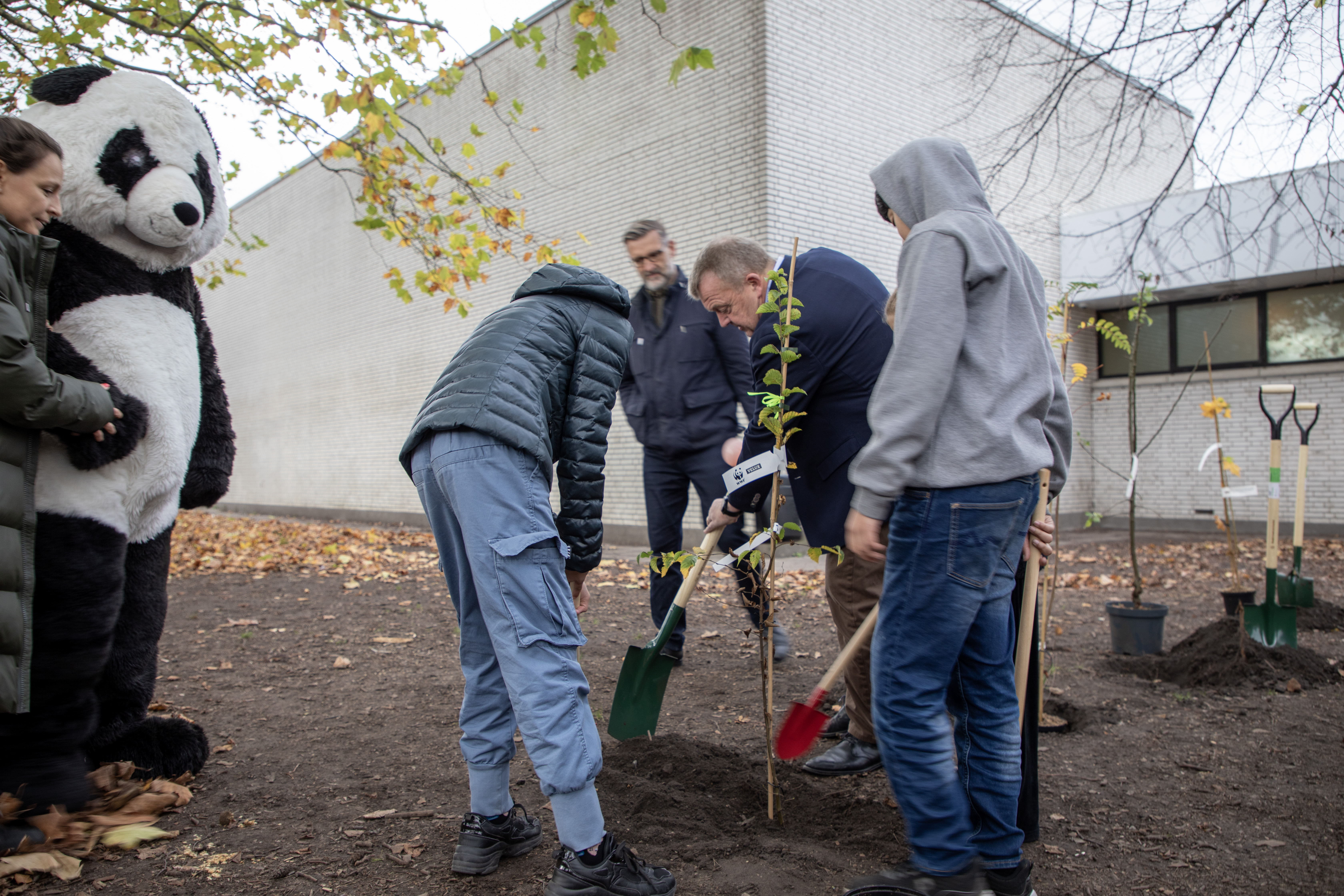 En anderledes start på dagen var morgenens arrangement på Dyvekeskolen også for Mikkel Aarø-Hansen, der fredag har første dag i stolen som generalsekretær i WWF Verdensnaturfonden. Også han fik lejlighed til at plante et træ – en almindelig røn – sammen med 4.V, og den nye generalsekretær var begejstret over elevernes store engagement i naturen.