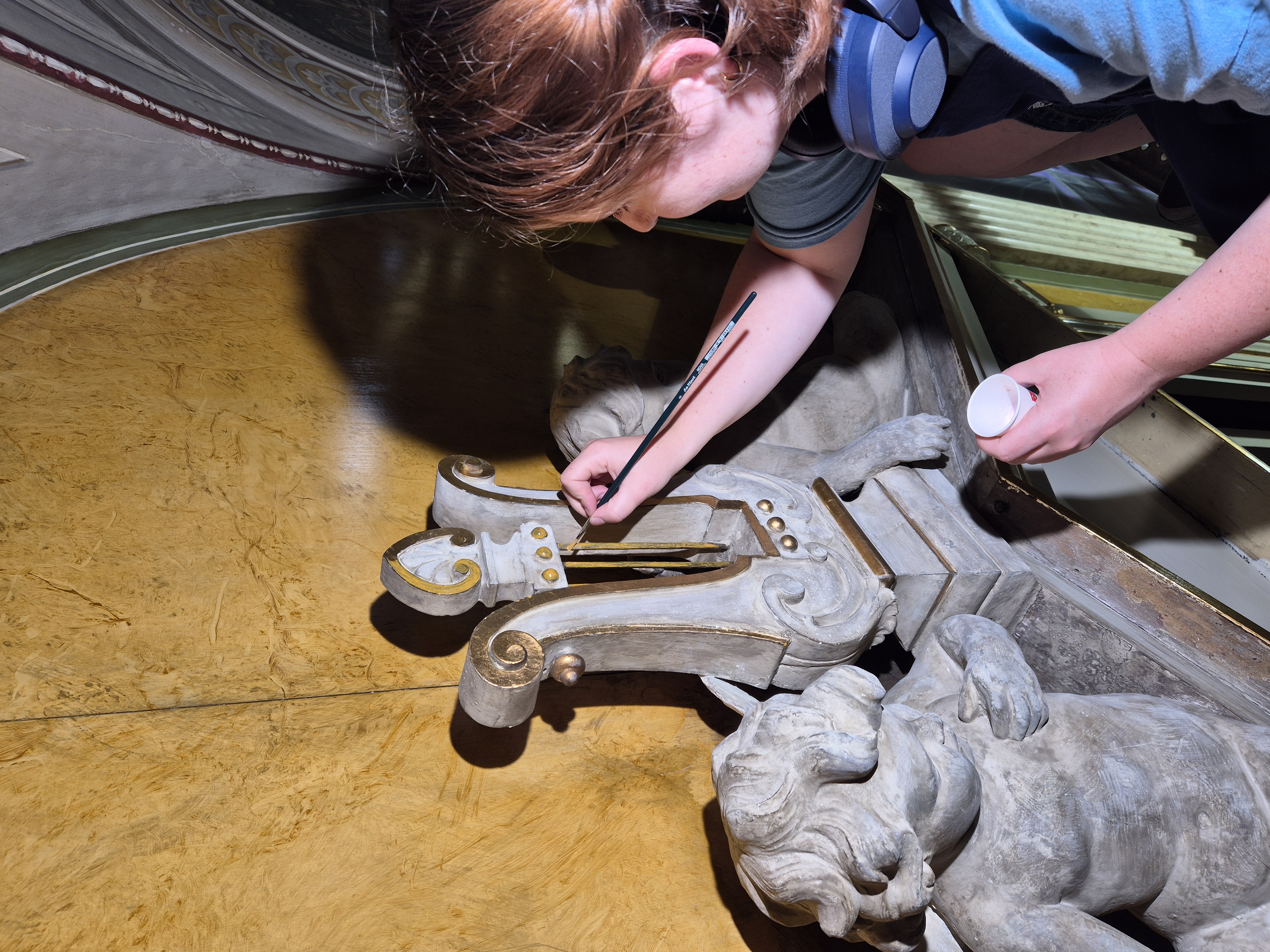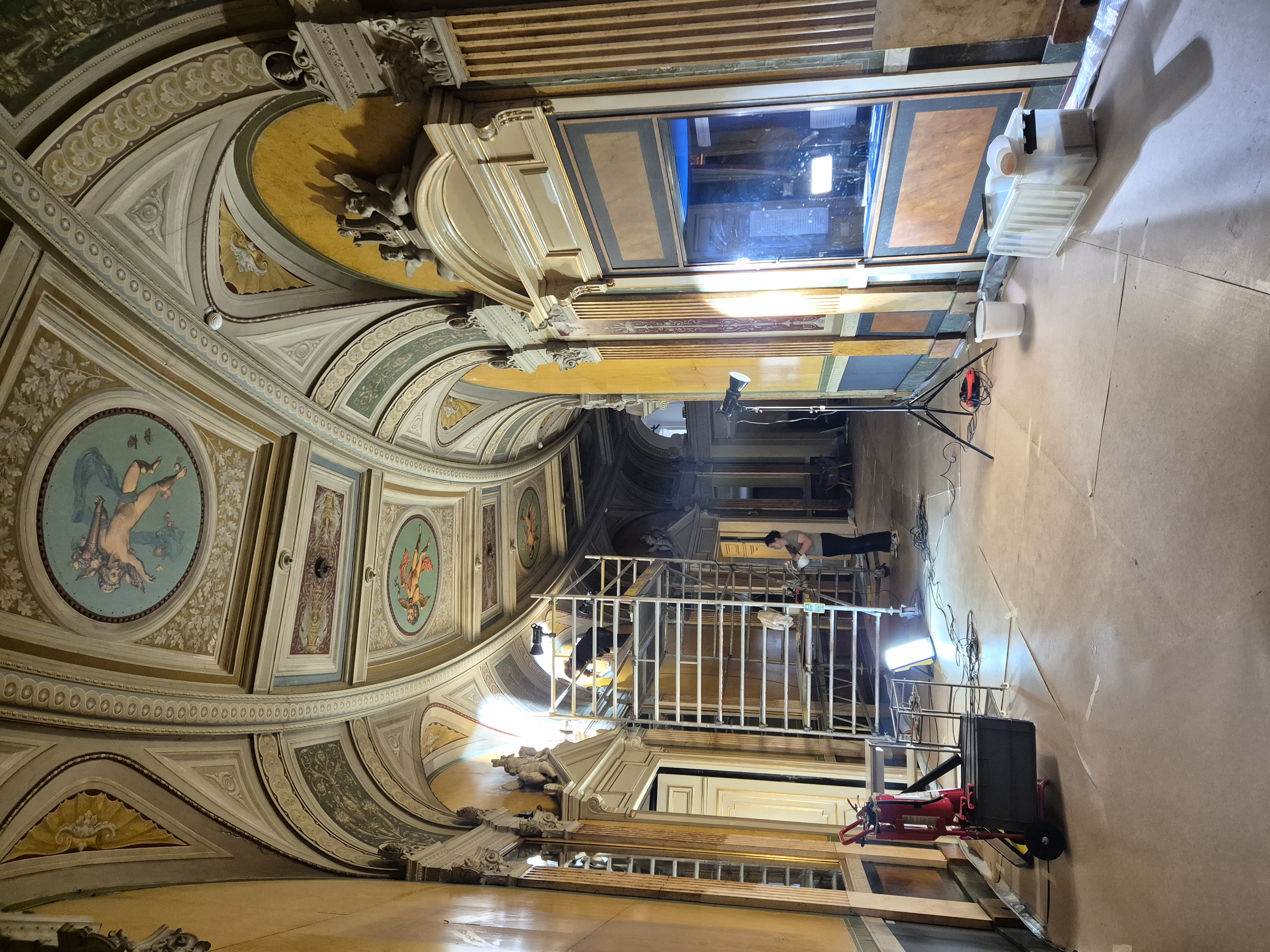 Balkonrundgangen på Det Kongelige Teaters Gamle Scene har gennemgået en større restaurering, og publikum kan nu opleve rummets bemalede vægge, stukudsmykninger og marmorerede bundlister stråle på ny.