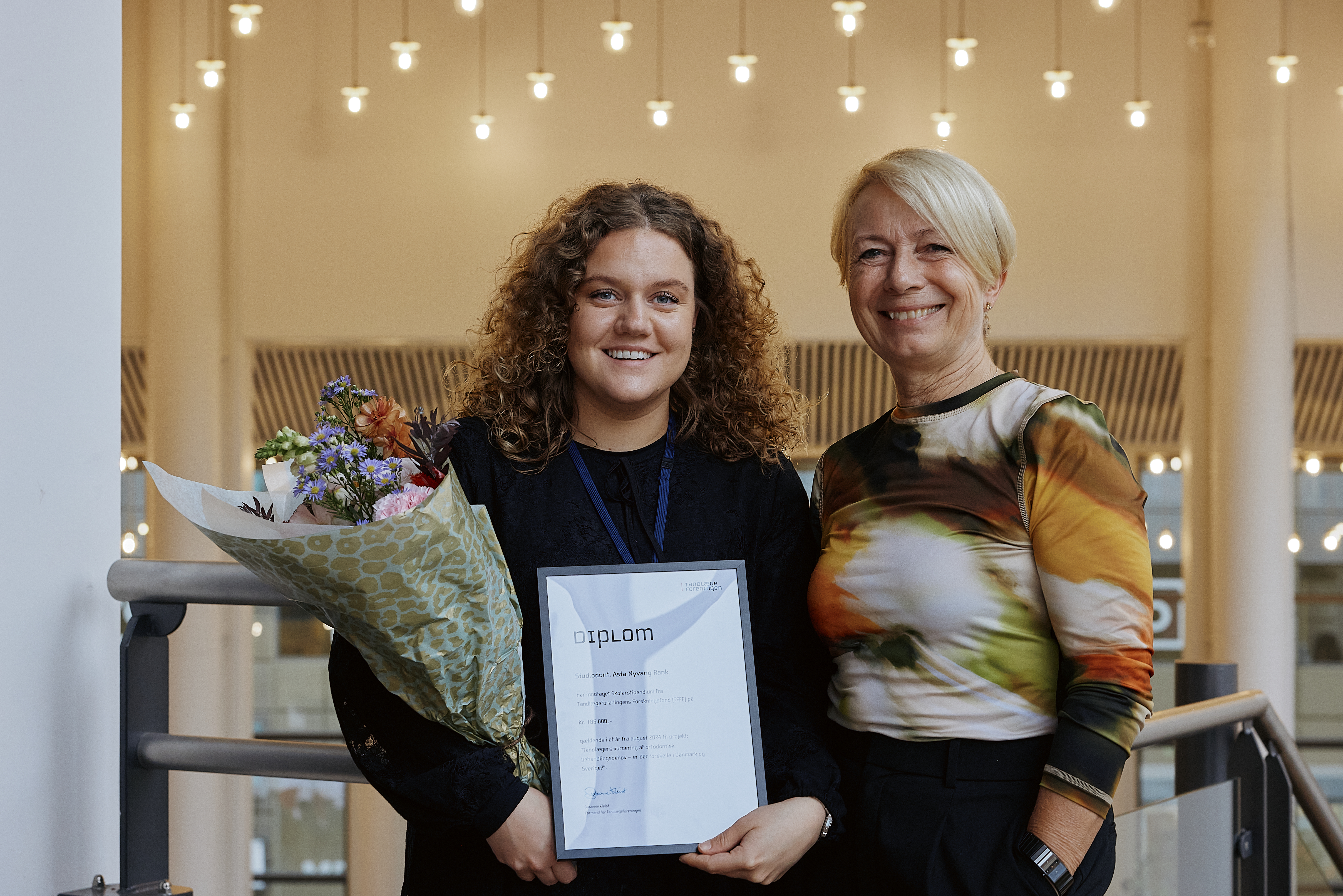 Asta Nyvang Rank fik overrakt skolarstipendiet på Tandlægeforeningens Symposium den 1. november 2024. Her var mere end 700 tandlæger samlet for at høre om tandpleje som en integreret og essentiel del af det samlede sundhedsvæsen i Danmark.