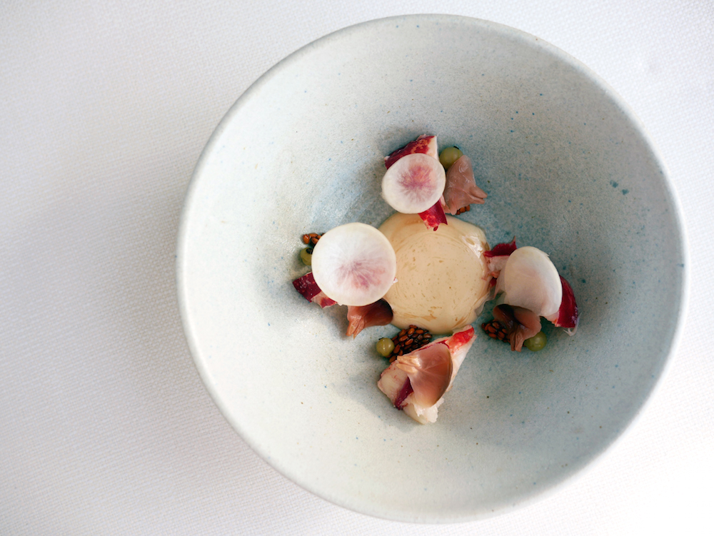 ”Med en fantastisk konsistens, der bør opleves, brillierer Tri med sit friske take på en kold hummerret. Hovedemnet står knivskarpt og tager opmærksomheden, og garnituren med bl.a. peberrodssaft og fermenterede hvide ribs underbygger noterne i hummeren. Sneradisen giver ekstra konsistens og retten er overvældende smuk i al sin enkelthed.”- Lød motivationen.