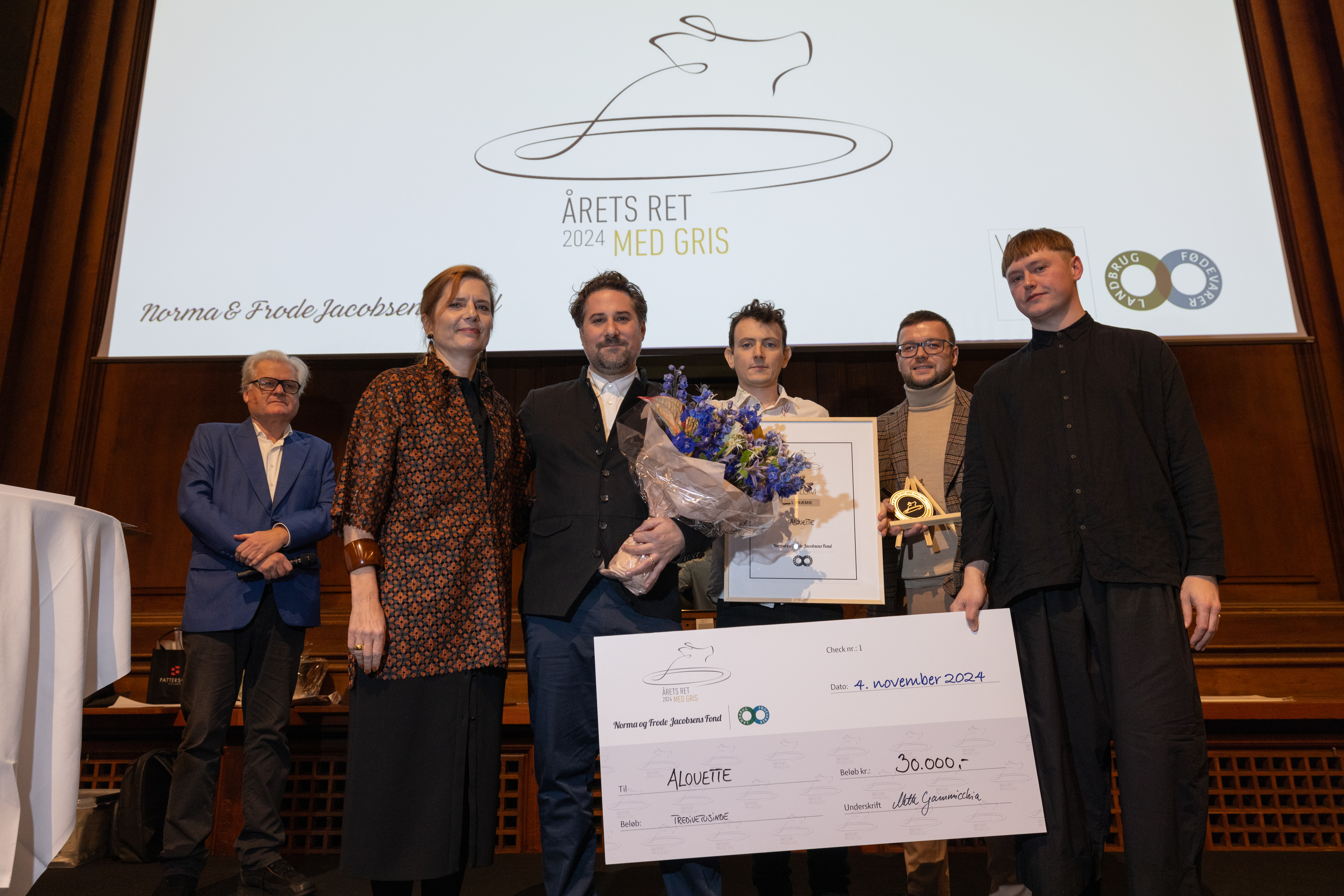 Udover Årets ret med fisk & skaldyr blev vinderen af Årets ret med gris 2024 også kåret. Blandt de fem nominerede var det Restaurant Alouette, ledet af køkkenchef Nick Curtin, der løb med sejren i den 12. udgave af konkurrencen. Restaurant Alouette imponerede juryen med deres hyldest til den danske Hindsholmgris. Med stor præcision og dyb respekt for råvarens unikke karakter, præsenterer Alouette en gastronomisk oplevelse, der fremhæver grisens bedste kvaliteter gennem flere velkomponerede elementer.