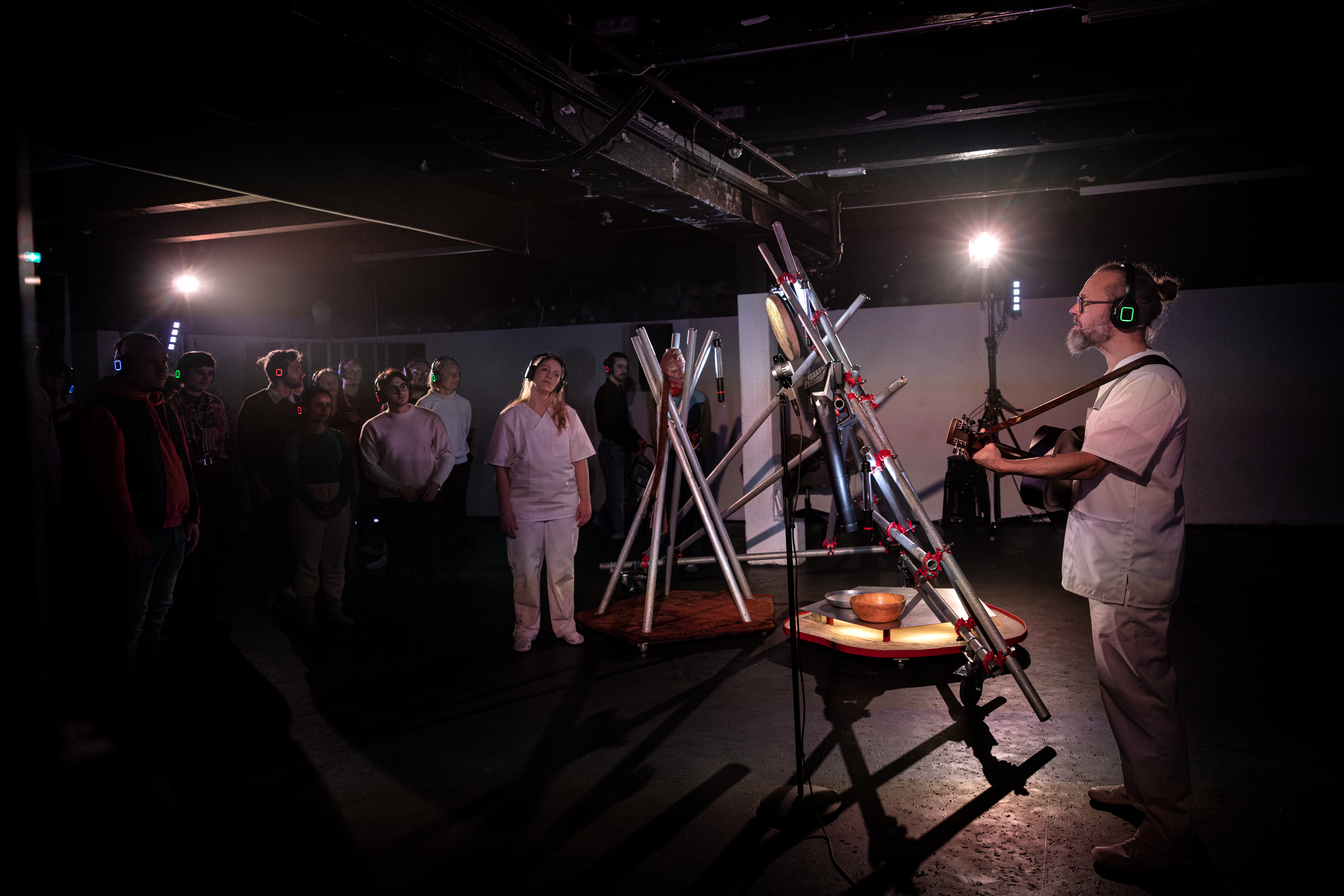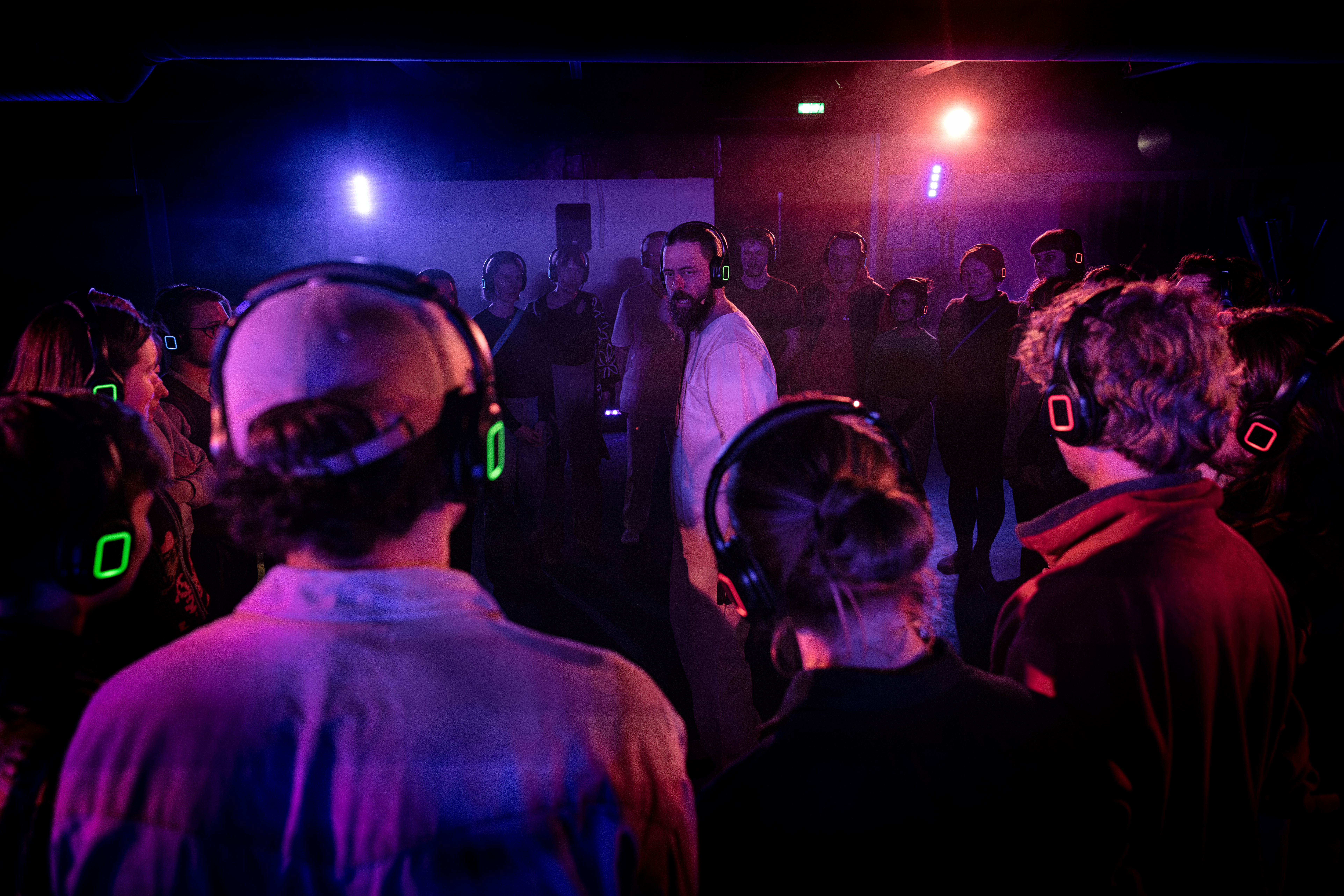 Under Midtjyllands bløde bakker ligger Mønsted Kalkgruber – verdens største kalkmine – med kilometerlange, underjordiske tunneler, gravet ud i hånden gennem næsten 1000 år. Oven over dette labyrintiske netværk breder et dramatisk og smukt kulturlandskab sig – formet af århundreders menneskelig indgriben i naturen. Det er netop her, publikum inviteres med på en sanselig og poetisk lydvandring skabt af Teater Fluks og Teater Seachange i tæt samarbejde med Mønsted Kalkgruber.