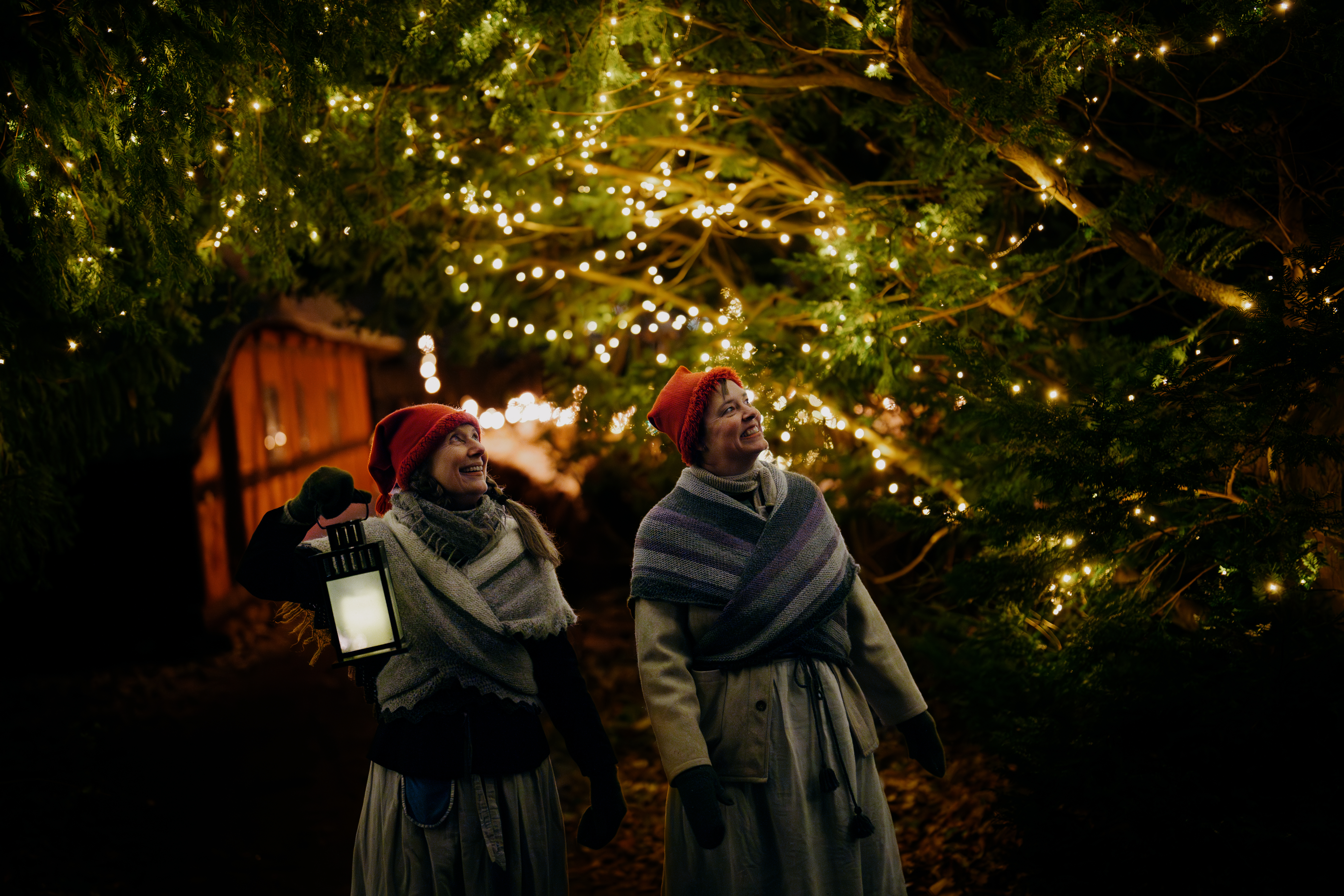Aftenjul på Frilandsmuseet er en magisk aften og eftermiddag i lysets tegn. Det starter kl. 14, så I kan være med, når decembermørket falder på. Det er det eneste tidspunkt på året, hvor I kan se museets gårde oplyst efter mørkets frembrud. Hele eftermiddagen og aftenen vil der være aktiviteter for hele familien. Udover at I kan titte ind ad vinduerne og se julelysene glimte, vil I også opleve museets landsby blive indhyllet i sang, når Lucia-optoget “bærer lyset frem.” Lucia-optoget slutter ved gården Ostenfeld. Her vil vi sammen tænde og danse om vores store juletræ. Der vil oogså være juleomvisninger i lanternens skær på udvalgte gårde, hvor I kan høre om de forskellige måder, man fejrede jul på op gennem tiden og i samfundets forskellige lag - fra møllerfruens jul til husmandsjul og jul på de svenske gårde. Børnene kan dyppe lys og lave uldjulepynt og bliver I sultne, vil der være masser af dampende og duftende julegodter, julemad og glögg og kakao.