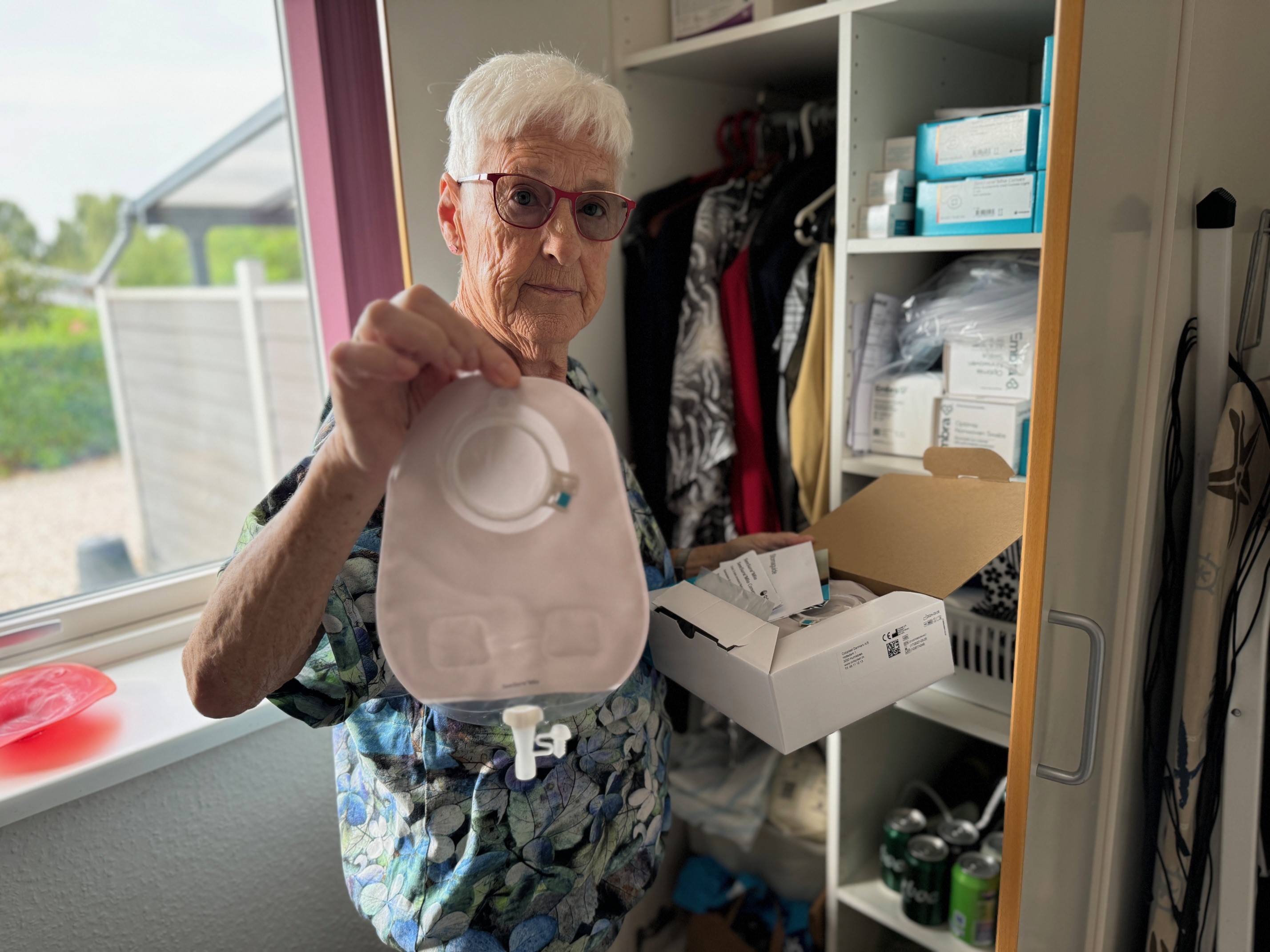 ”I begyndelsen kom hjemmeplejen og hjalp, men der gik ikke længe, inden jeg selv kunne skifte den. Og nu fungerer det bare upåklageligt både dag og nat – og kommunens sygeplejerske har sørget for, at jeg fra begyndelsen har haft et lager af de rigtige produkter,” forklarer hun.