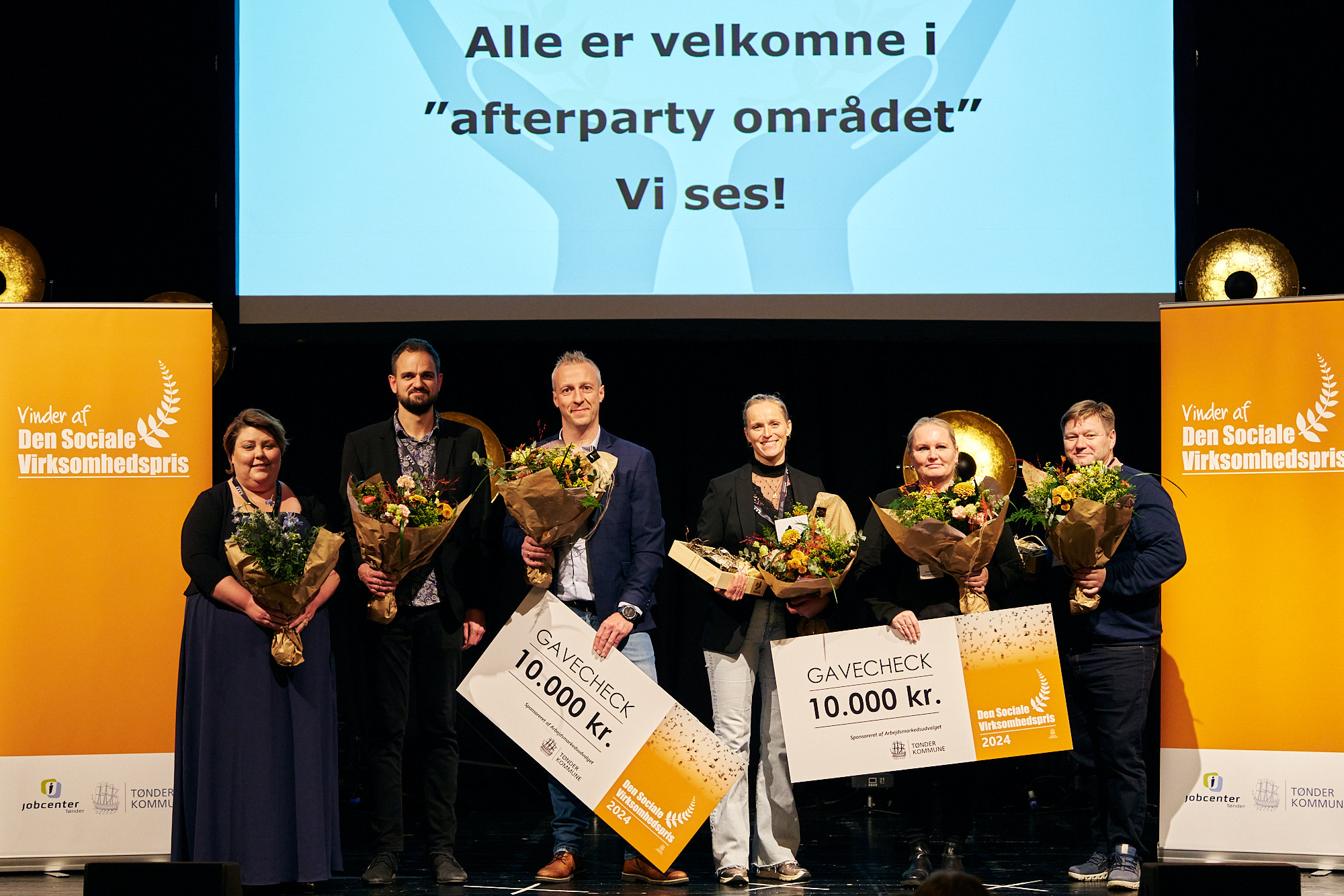 Den Sociale Virksomhedspris: Tildelt to virksomheder fra Tønder Kommune, som har gjort en særlig indsats for at styrke det lokale rummelige arbejdsmarked ved at inkludere sårbare på deres virksomhed.