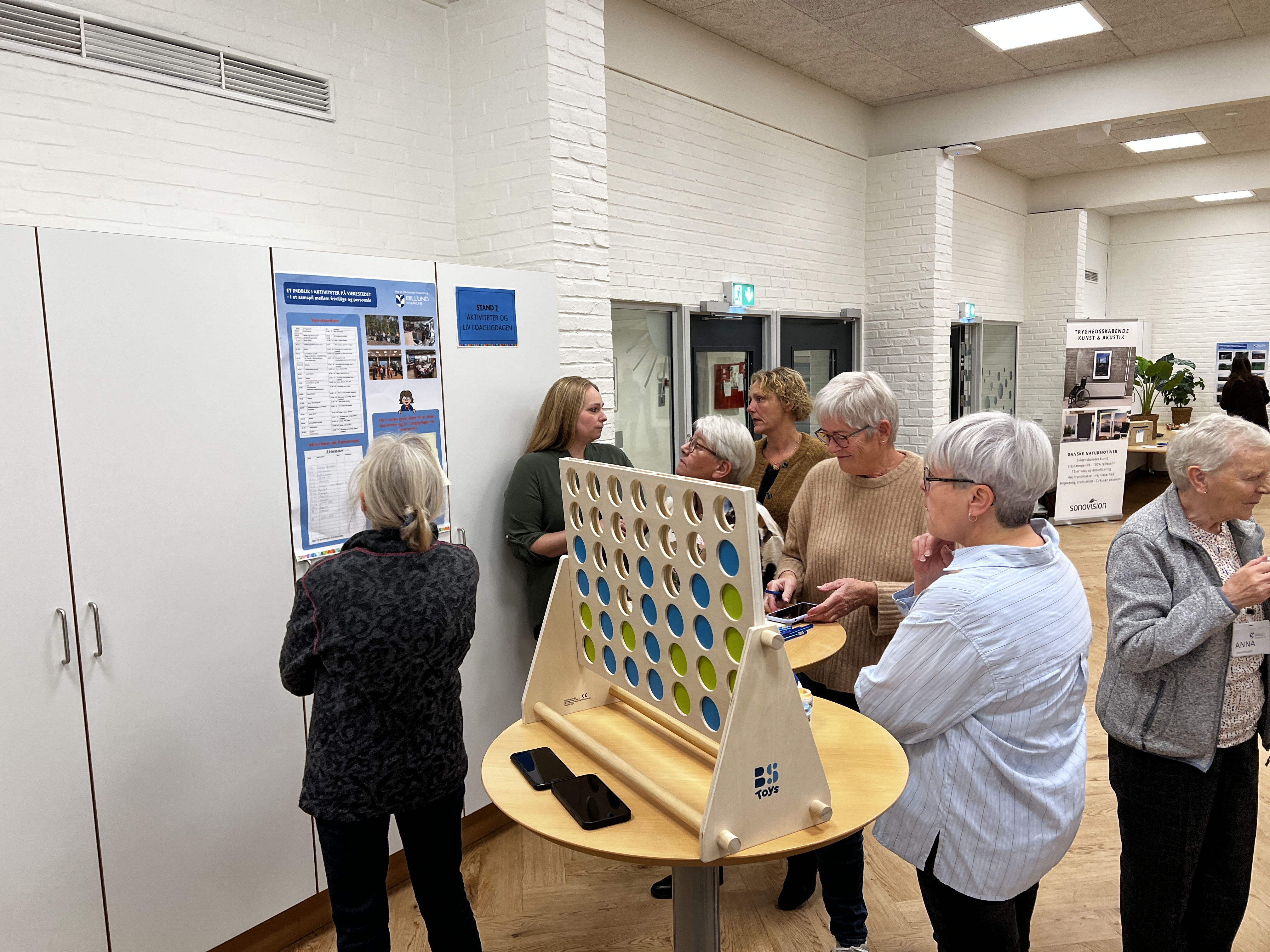 De fremmødte deltog også ved forskellige stande, hvor der blev diskuteret aktiviteter i hverdagen, hjemlig indretning og samarbejde med de pårørende. Med inspiration fra Fynsgades Plejehjem blev der bl.a. præsenteret idéer til at danne en pårørendegruppe, som kan styrke netværket mellem pårørende. Derudover blev der også vist en aktivitetsvogn, der kan inspirere til meningsfulde daglige aktiviteter for beboerne.