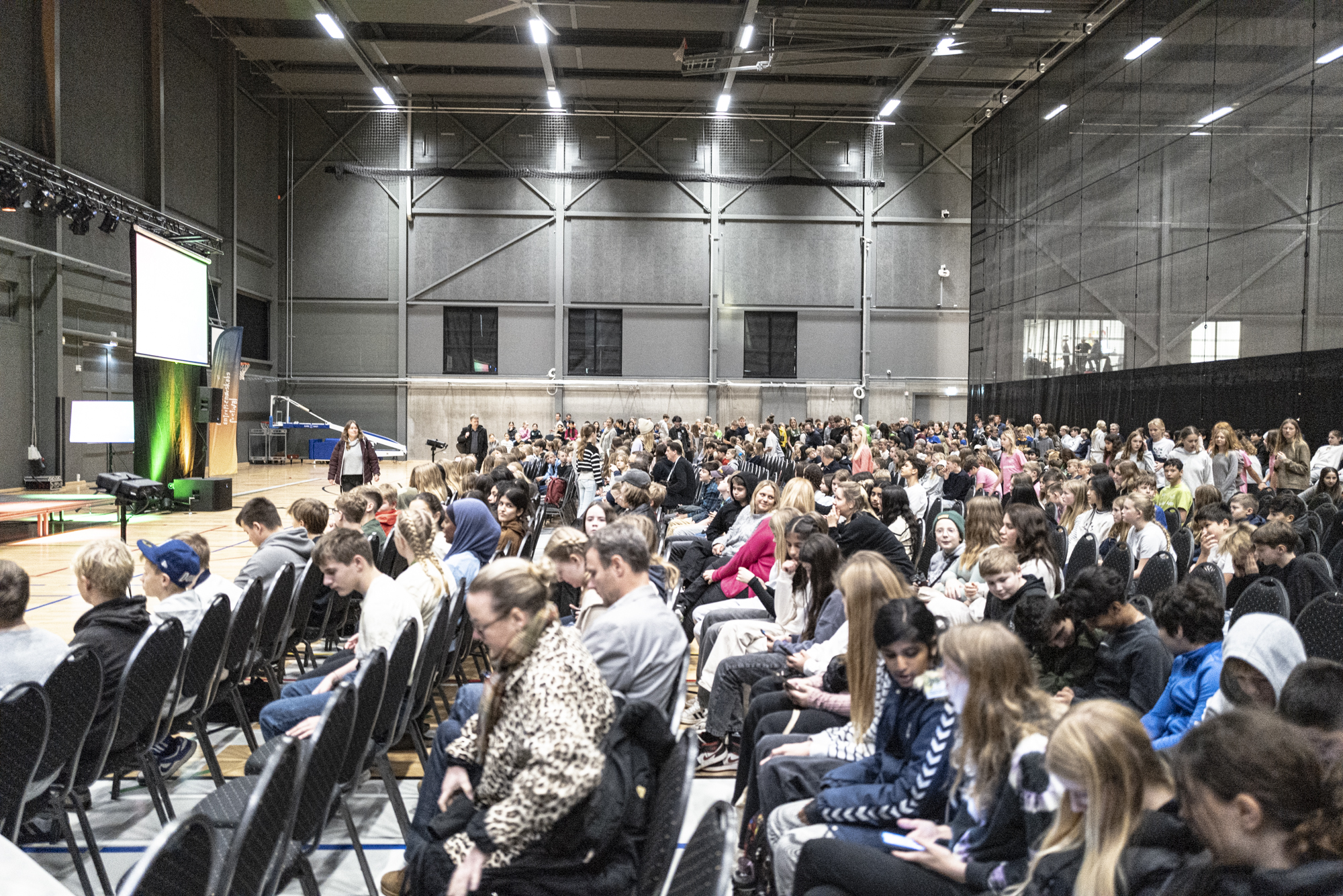En sal fuld af energiske 6. og 7. klasses skoleelever og deres stolte lærere skabte en kæmpe idéfest i Holbæk Sportsby til Danmarks Entreprenørskabsfestival for grundskolen.