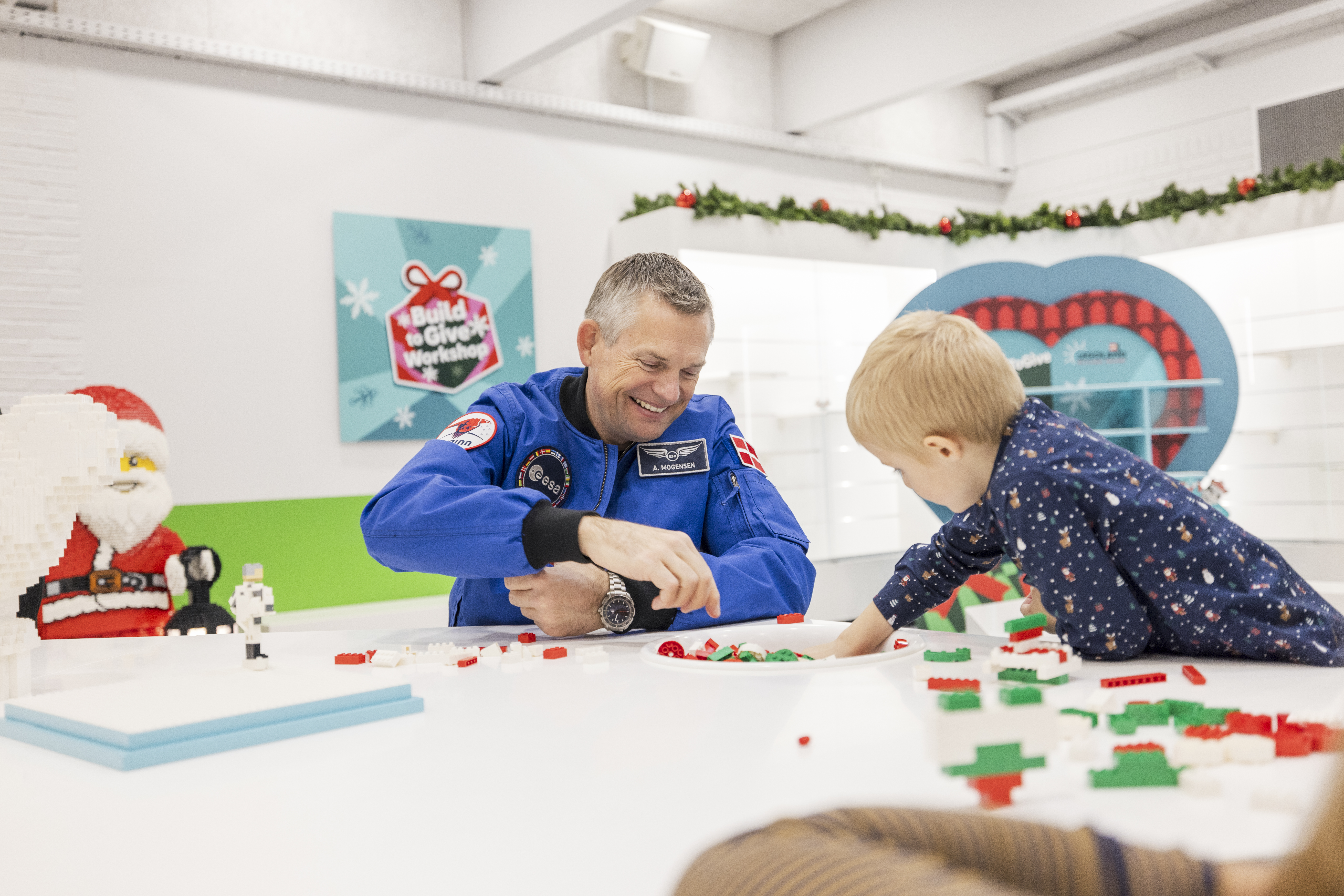 Som en del af besøget var Andreas Mogensen også forbi byggeaktiviteten “Build to Give” i LEGOLAND, hvor han byggede årets allerførste LEGO julehjerte sammen med 15 begejstrede børnefamilier, der fik denne unikke oplevelse på baggrund af en lodtrækning mellem LEGOLAND sæsonpasholdere. Blandt de fremmødte var flere børn med interesse for rummet, som fik mulighed for at stille spørgsmål og tage billeder med Andreas Mogensen. Også Michael Ottesen, direktør i LEGOLAND, var begejstret for besøget.