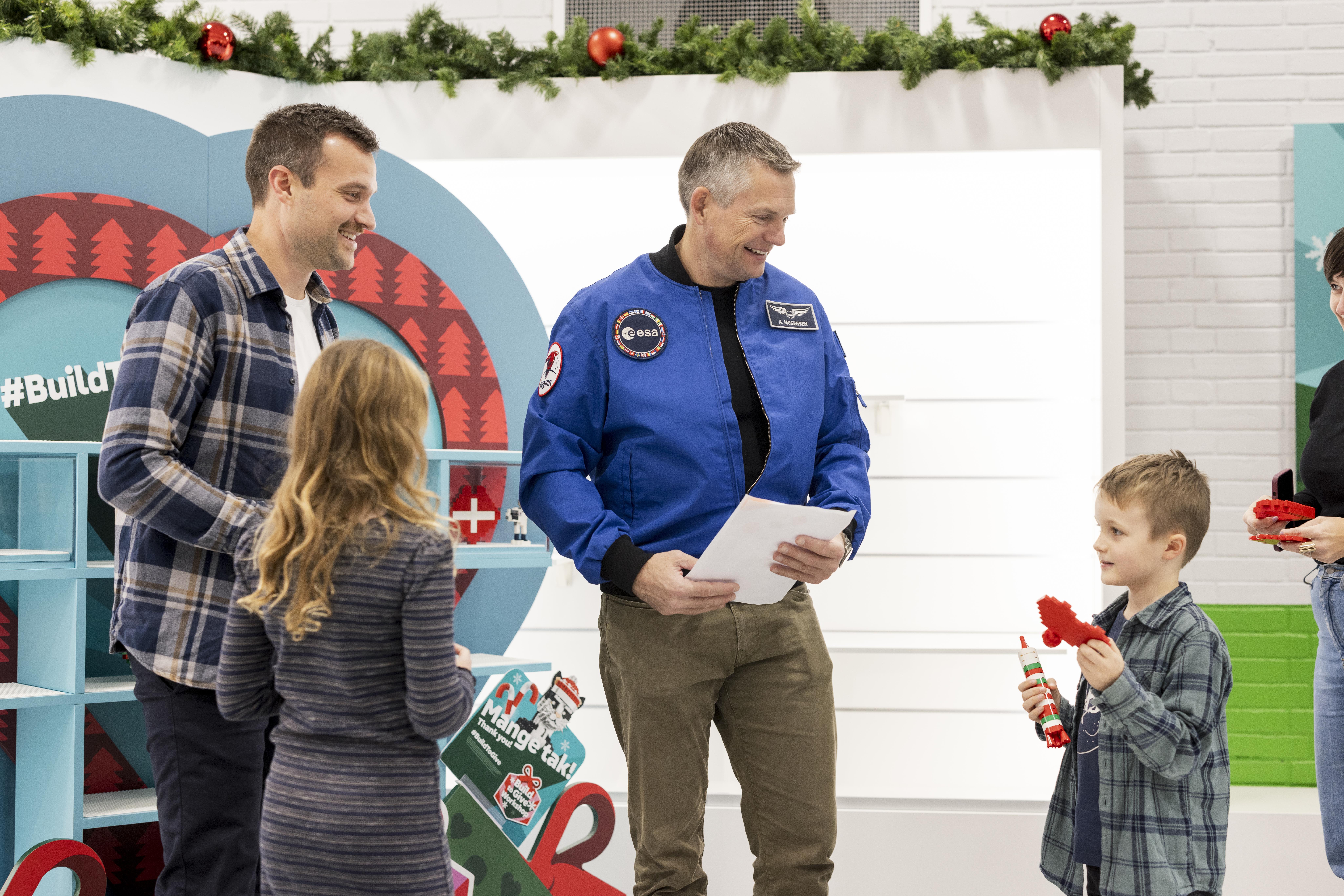 Som en del af besøget var Andreas Mogensen også forbi byggeaktiviteten “Build to Give” i LEGOLAND, hvor han byggede årets allerførste LEGO julehjerte sammen med 15 begejstrede børnefamilier, der fik denne unikke oplevelse på baggrund af en lodtrækning mellem LEGOLAND sæsonpasholdere. Blandt de fremmødte var flere børn med interesse for rummet, som fik mulighed for at stille spørgsmål og tage billeder med Andreas Mogensen. Også Michael Ottesen, direktør i LEGOLAND, var begejstret for besøget.
