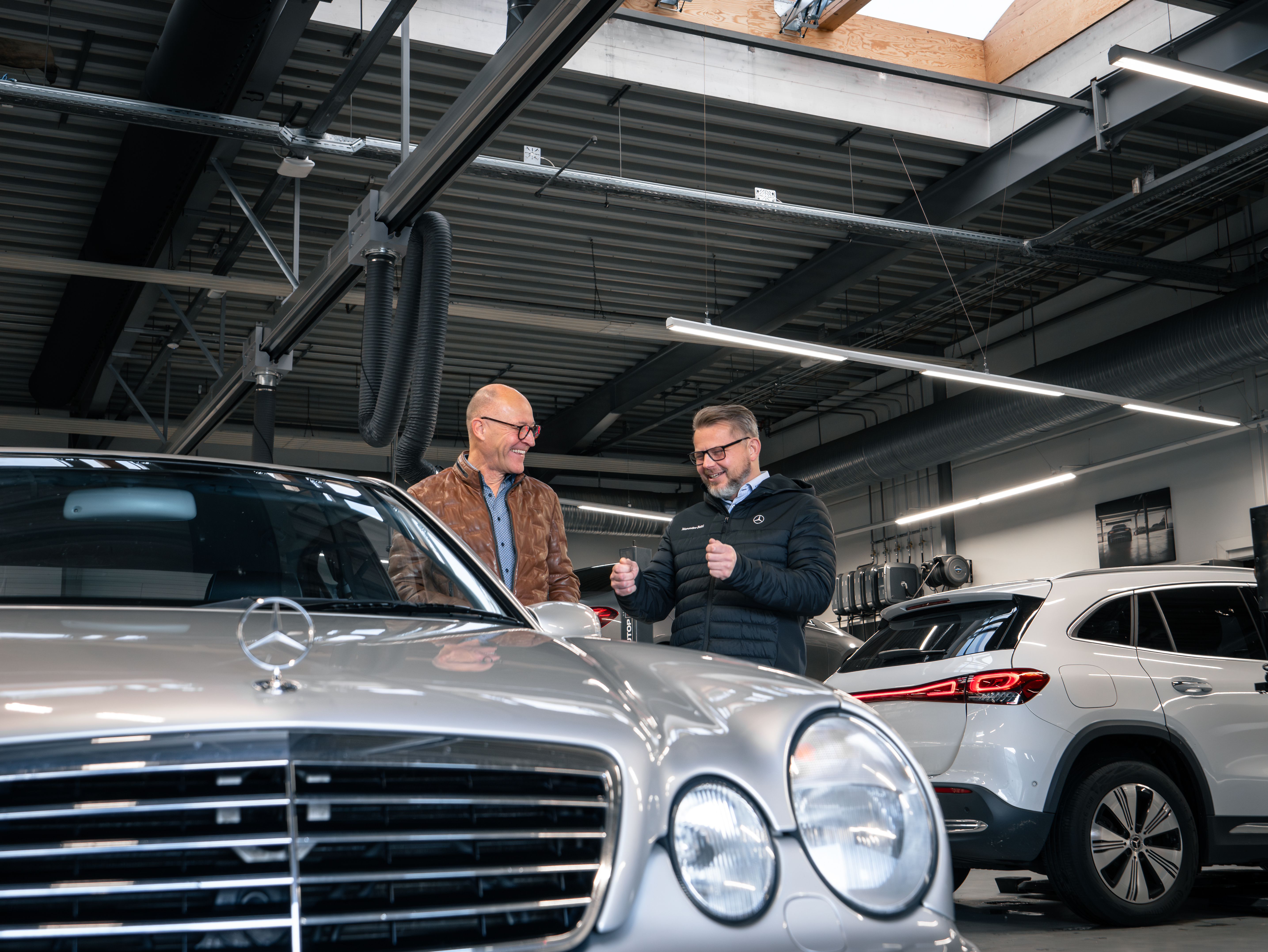 - I 1999 havde Mercedes ikke så alsidigt et udvalg som i dag. Her var bilerne meget dyre, og det var en stor investering at købe en Mercedes-Benz. En investering, som jeg tog et langt tilløb til. Men jeg glemmer aldrig dagen, da jeg så skulle hente den. Det var stort, understreger Stig Göte her et kvart århundrede senere.
