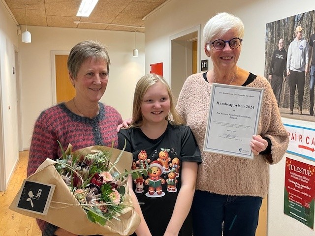 ”Vi er stolte og overraskede over at modtage Handicapprisen. Børnene hos os er henvist fra kommunen eller skolen, hvis de fornemmer, at her er måske en familie, der kunne have gavn af vores tilbud. De børn skal også have oplevelser at fortælle om efter en weekend eller en ferie, og derfor skal pengene bruges på en tur til Esbjerg Fiskeri Museum,” siger Anny og Vibeke fra Red Barnets Familieoplevelsesklub i Billund.