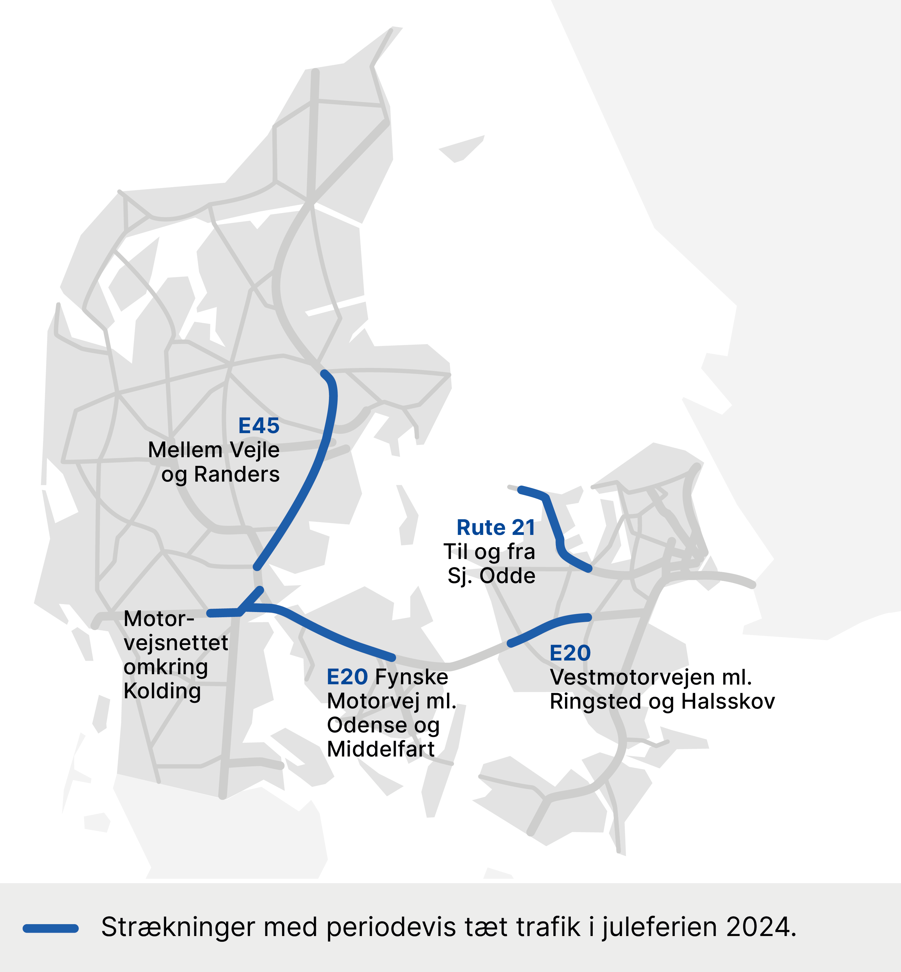 Når juleferien begynder, og helligdagene nærmer sig, drager mange danskere afsted for at fejre julen med familie og venner. I år falder juleaften på en tirsdag, og derfor forventer Vejdirektoratet, at en del af den udrejsetrafik, der sædvanligvis samler sig lillejuleaften, i stedet vil sprede sig over flere dage fra fredag den 20. til tirsdag den 24. december.