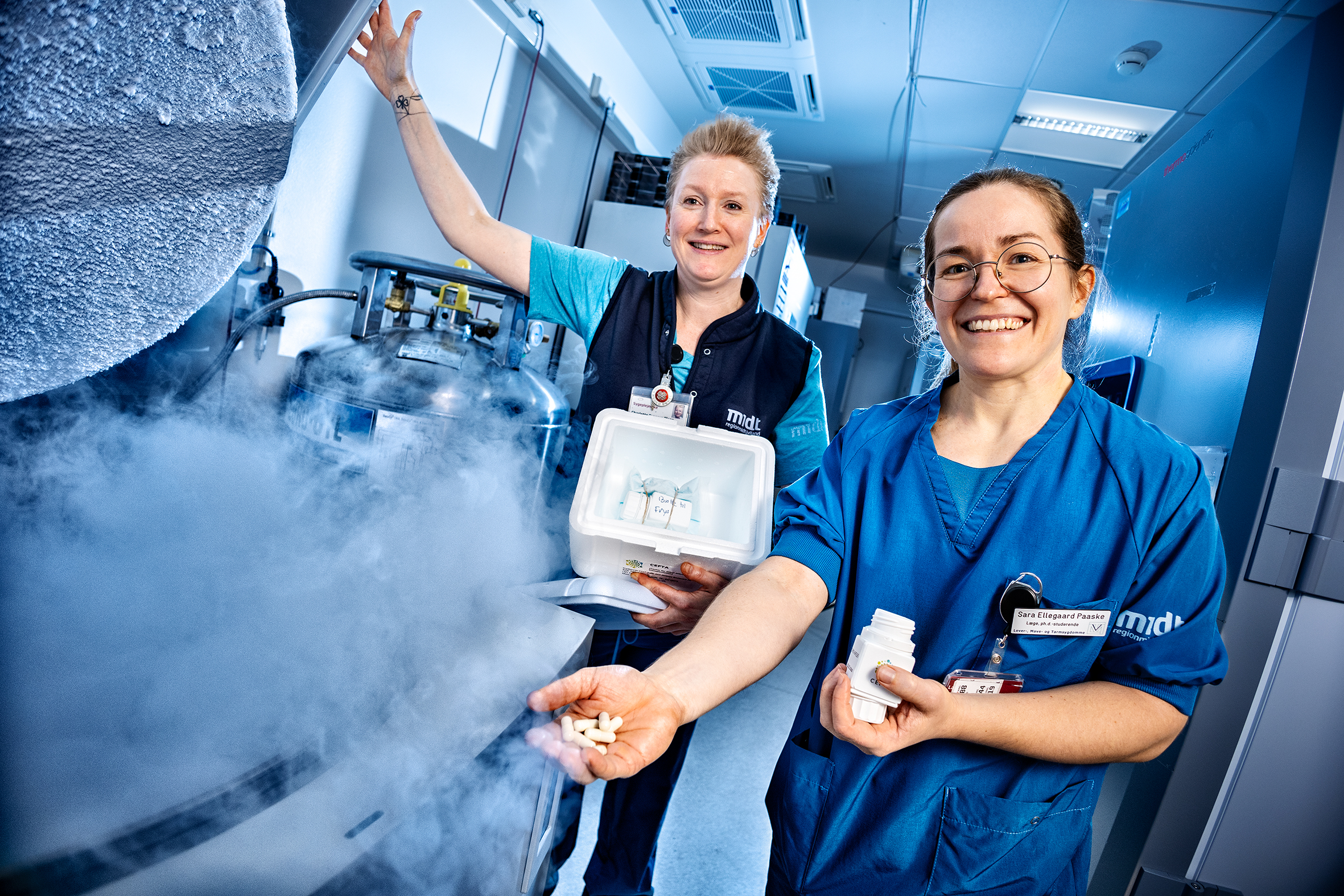 Patienterne skal have 2-3 behandlinger med 3-4 dages mellemrum, og patienterne kommer stadig ind på hospitalet for at få den første behandling, men hvis personalet vurderer, at patienten uden problemer vil kunne tage den næste behandling hjemme, får patienten en køleboks med kapsler med hjem til fryseren.