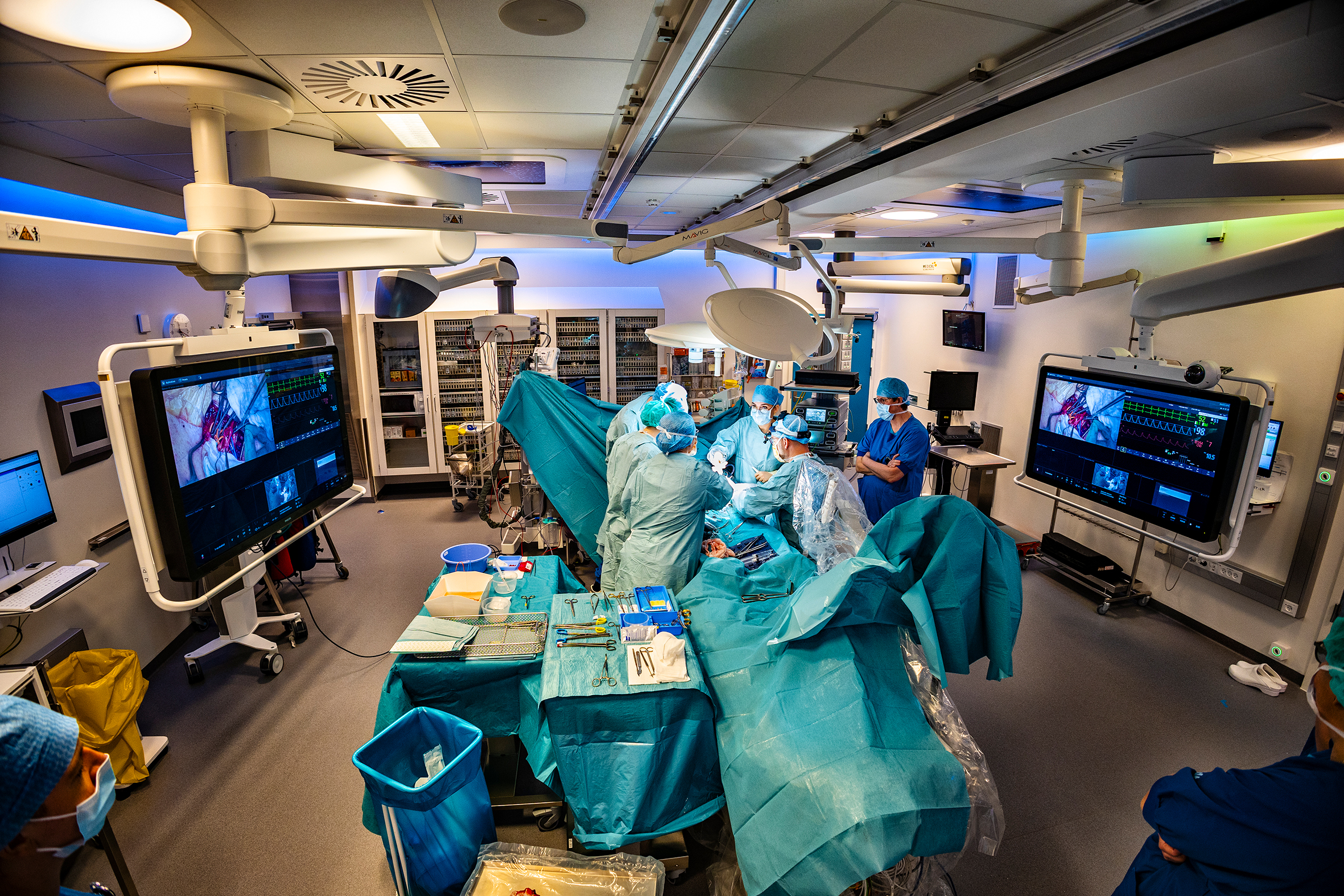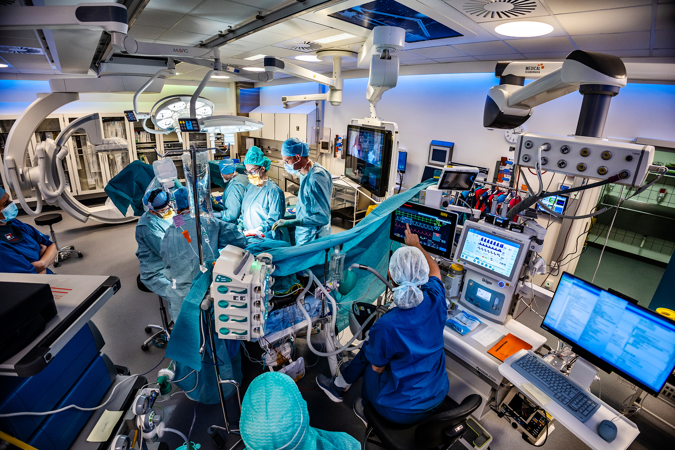 - Hvis vi skulle operere det hele som åben operation, ville det blive en meget omfattende og risikabel operation. Med Danmarks mest moderne hybridstue kan vi nu udføre disse behandlinger som mere skånsomme hybridoperationer, så patienterne undgår ventetid mellem operation og ballonbehandling.