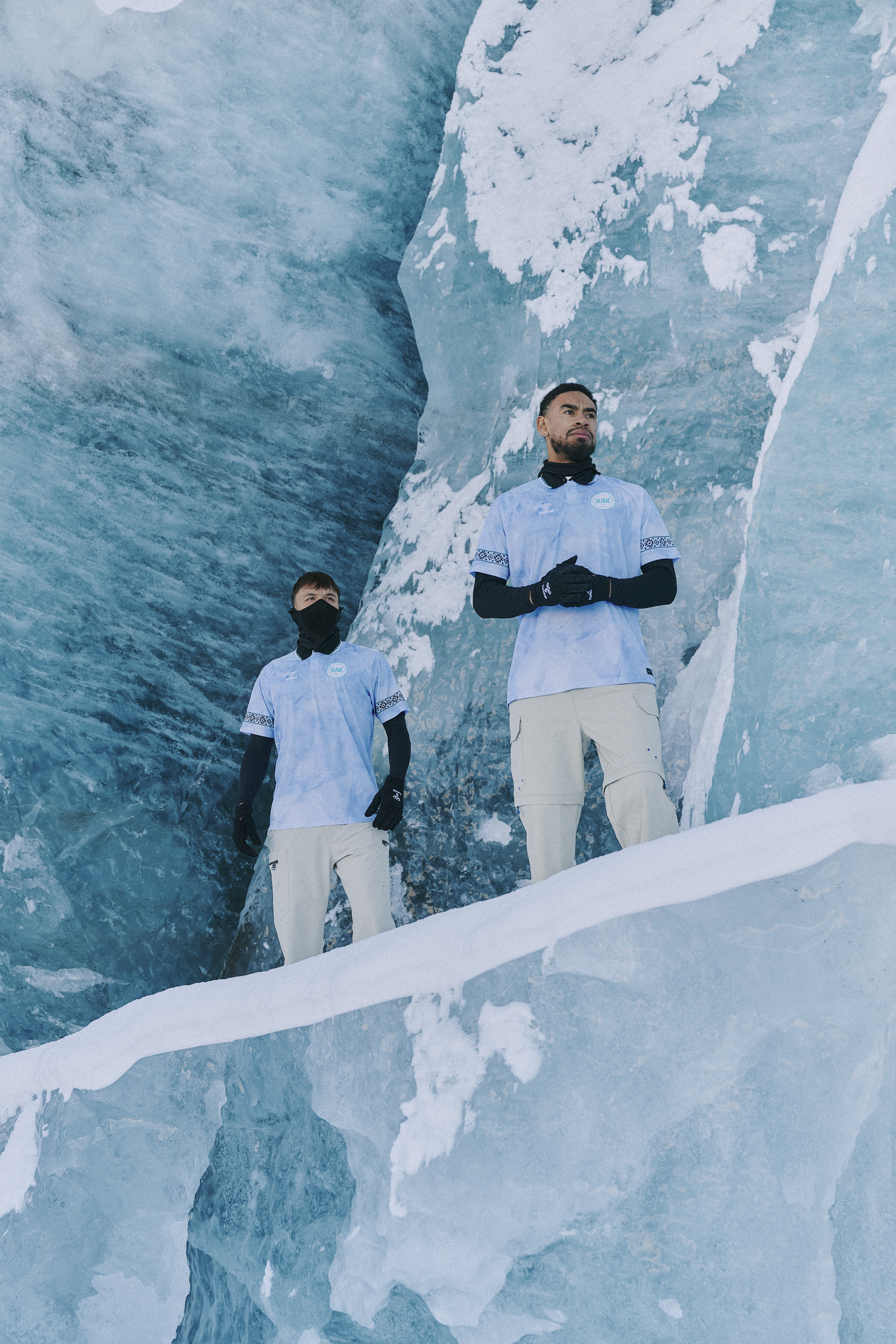 Udebanetrøjens design er inspireret af indlandsisens uendelige mønstre. De detaljerede grafikker på trøjen fremhæver gletsjernes stille, men enorme kraft, mens avittat-inspirerede mønstre på ærmerne hylder det traditionelle grønlandske håndværk, der ses i kamikker og broderede nationaldragter.