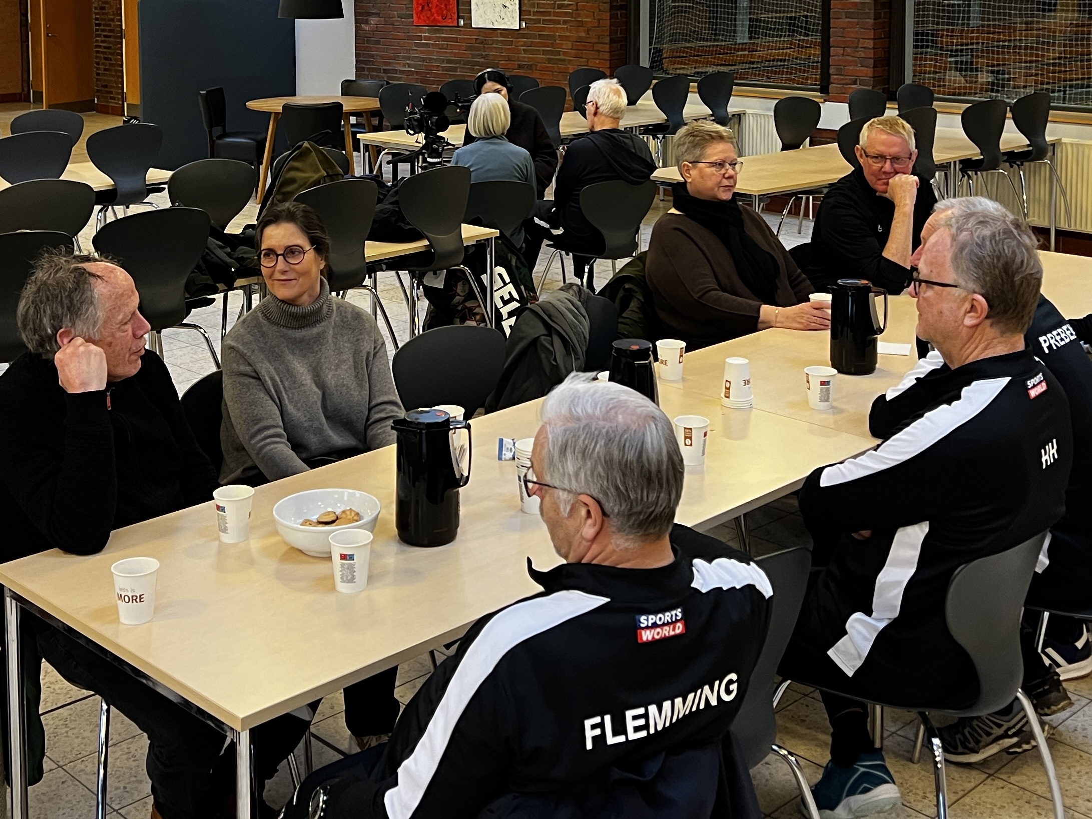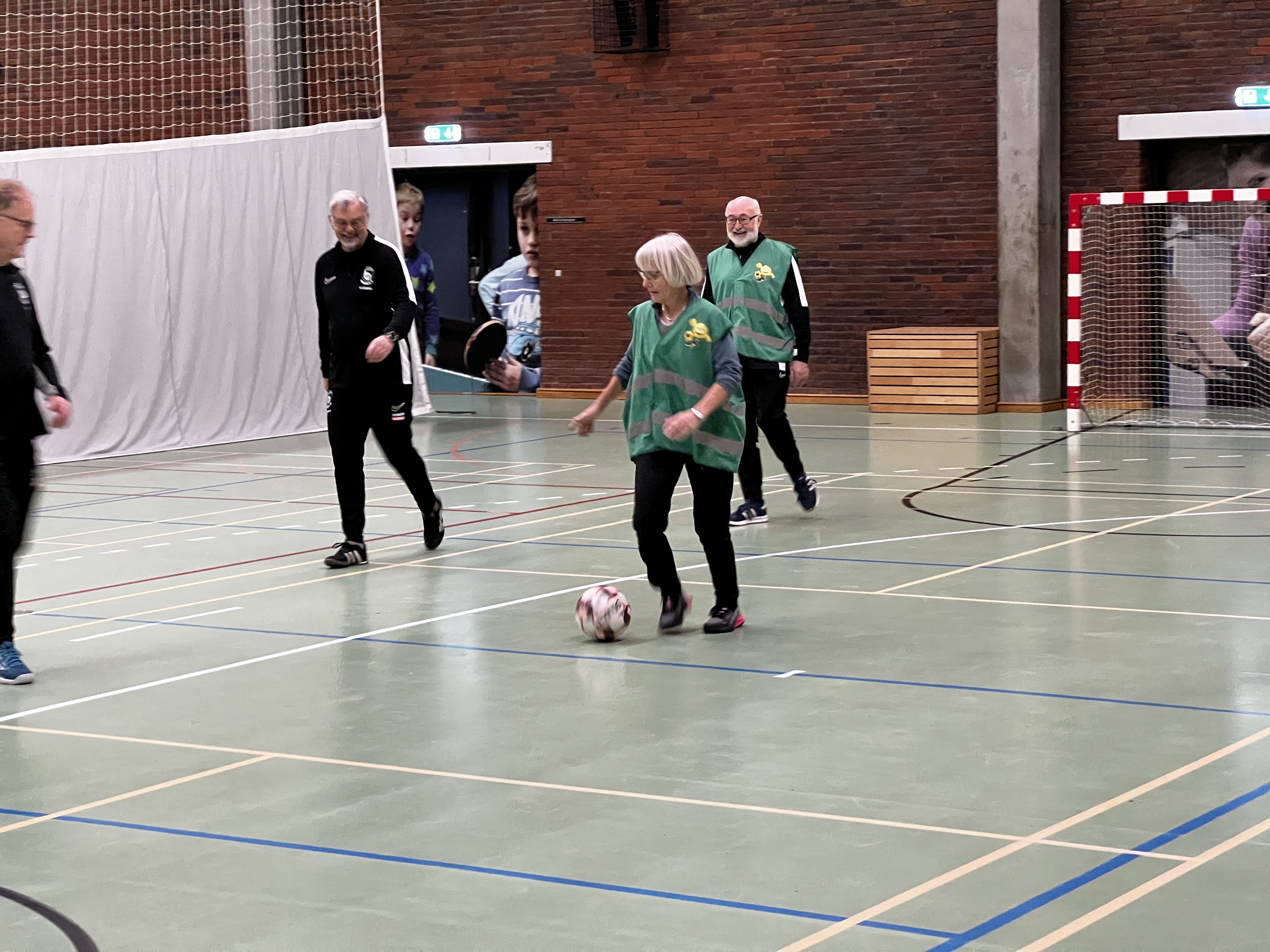 Holdet mødes hver tirsdag, hvor de træner og efterfølgende får en kop kaffe og en god snak. Til dagens træning var der besøg af Ann Charlotte Gaardsvig Vilstrup, udvalgsformand for Voksenudvalget i Billund Kommune, som var forbi for at opleve det særlige fællesskab.