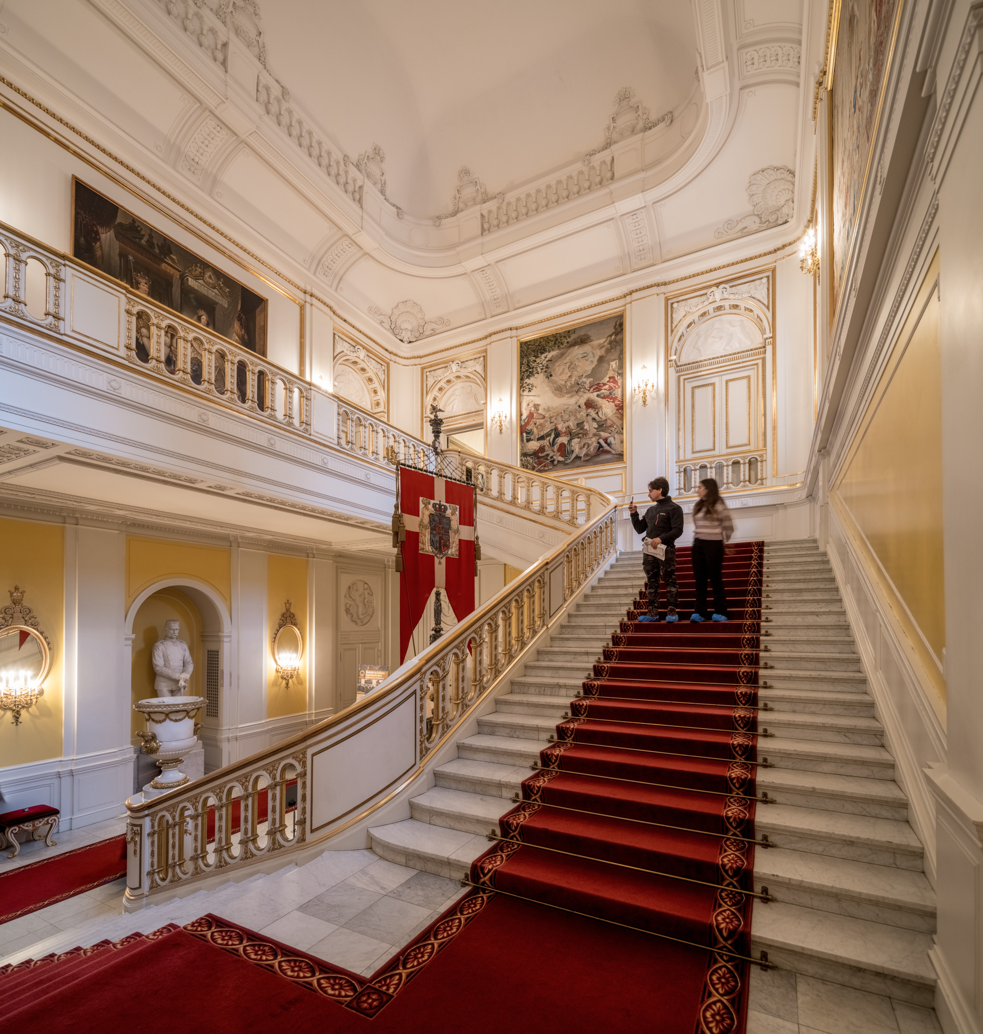 Her kommer man blandt andet forbi Tronsalen, hvorfra Kong Frederik 10. sidste år blev udråbt til konge fra balkonen, samt den store Riddersal med Bjørn Nørgaards gobeliner, der gennem tiden har lagt sted til utallige officielle statsmiddage ved modtagelsen af udenlandske statsoverhovedet såvel som Kronprins Christians 18-års fødselsdag med unge festdeltagere fra alle landets kommuner.
