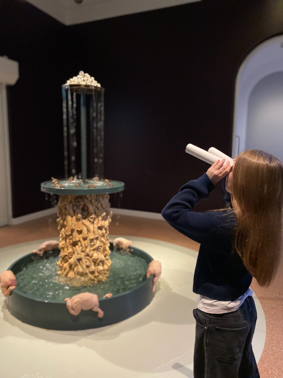 I Nivaagaards Malerisamlings kreative vinterferieværksted kan børnene lade sig inspirere af Michael Kviums fontæne Tearfall i udstillingen og klippe, klistre og bygge deres egne fontæner med en sjov historie.