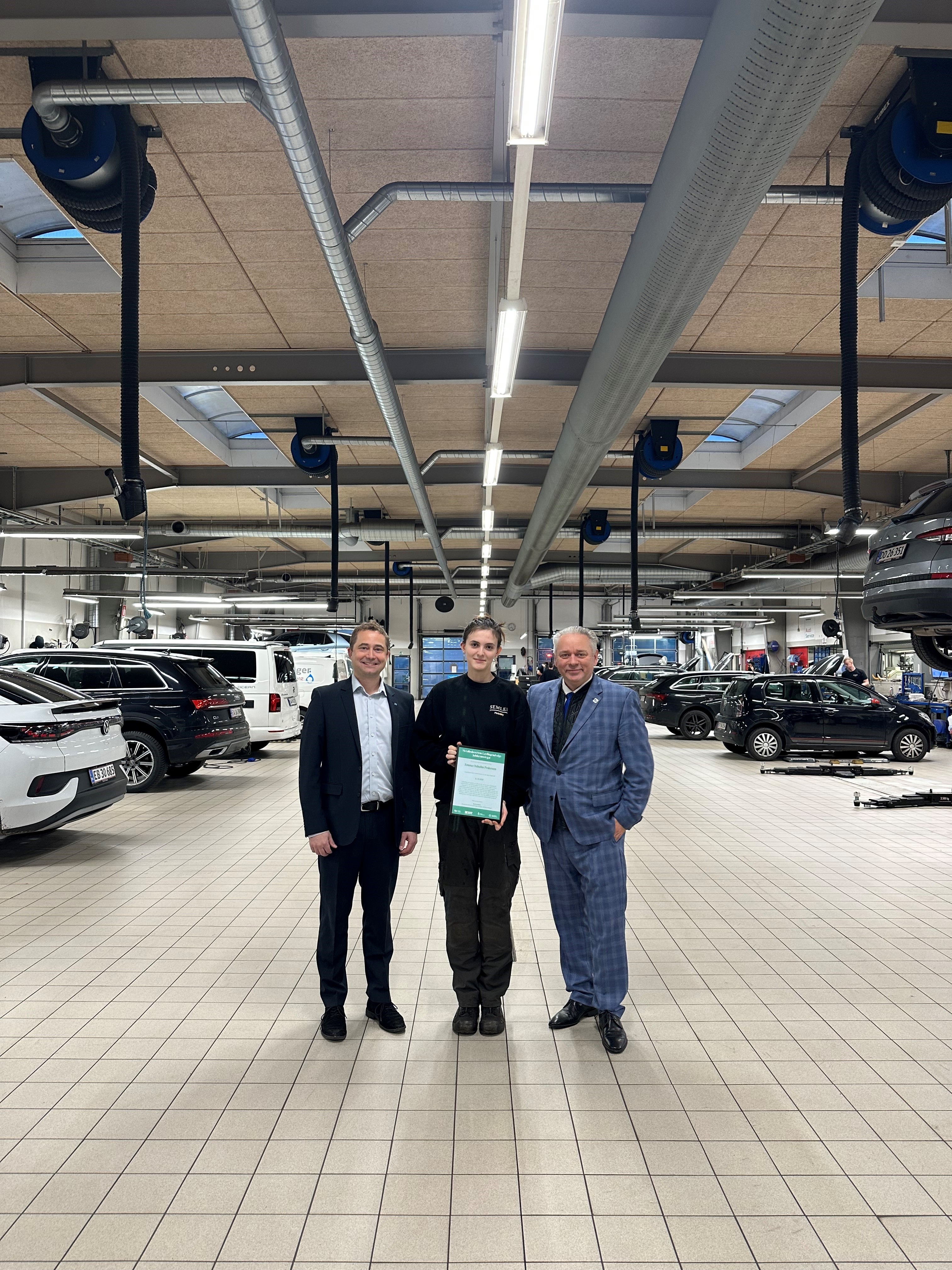 Emma Oxholm Pedersen bliver udlært som personvognsmekaniker i januar 2027 fra Semler Mobility Retail. Hun er 18 år og bor i Hillerød.