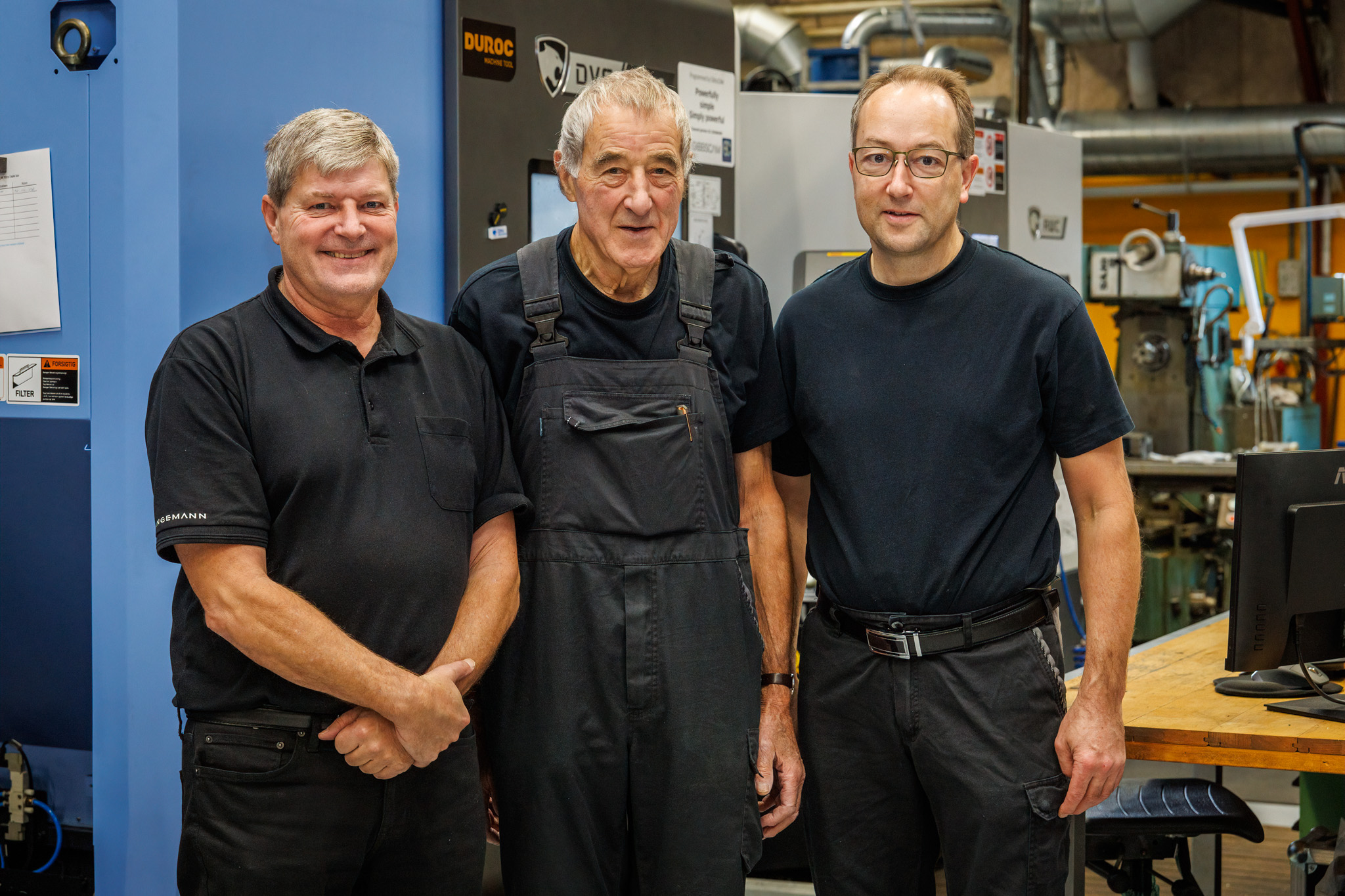 Bos far Helge Ingemann lagde grunden til maskinfabrikken for 50 år siden. Helge har stadig sin daglige gang på fabrikken som konsulent. Og Helges flair for innovation og opfindsomhed præger fortsat virksomheden: