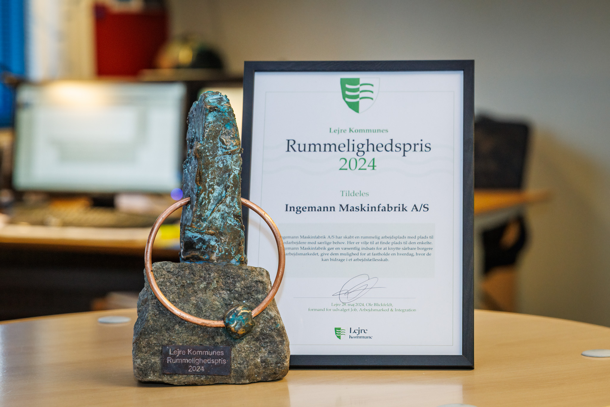 Lars Hjulmann er tydeligt stolt af det fællesskab, som hersker hos Ingemann Maskinfabrik. Desuden er han særlig stolt af, at virksomheden modtog Lejre Kommunes Rummelighedspris sidste år: