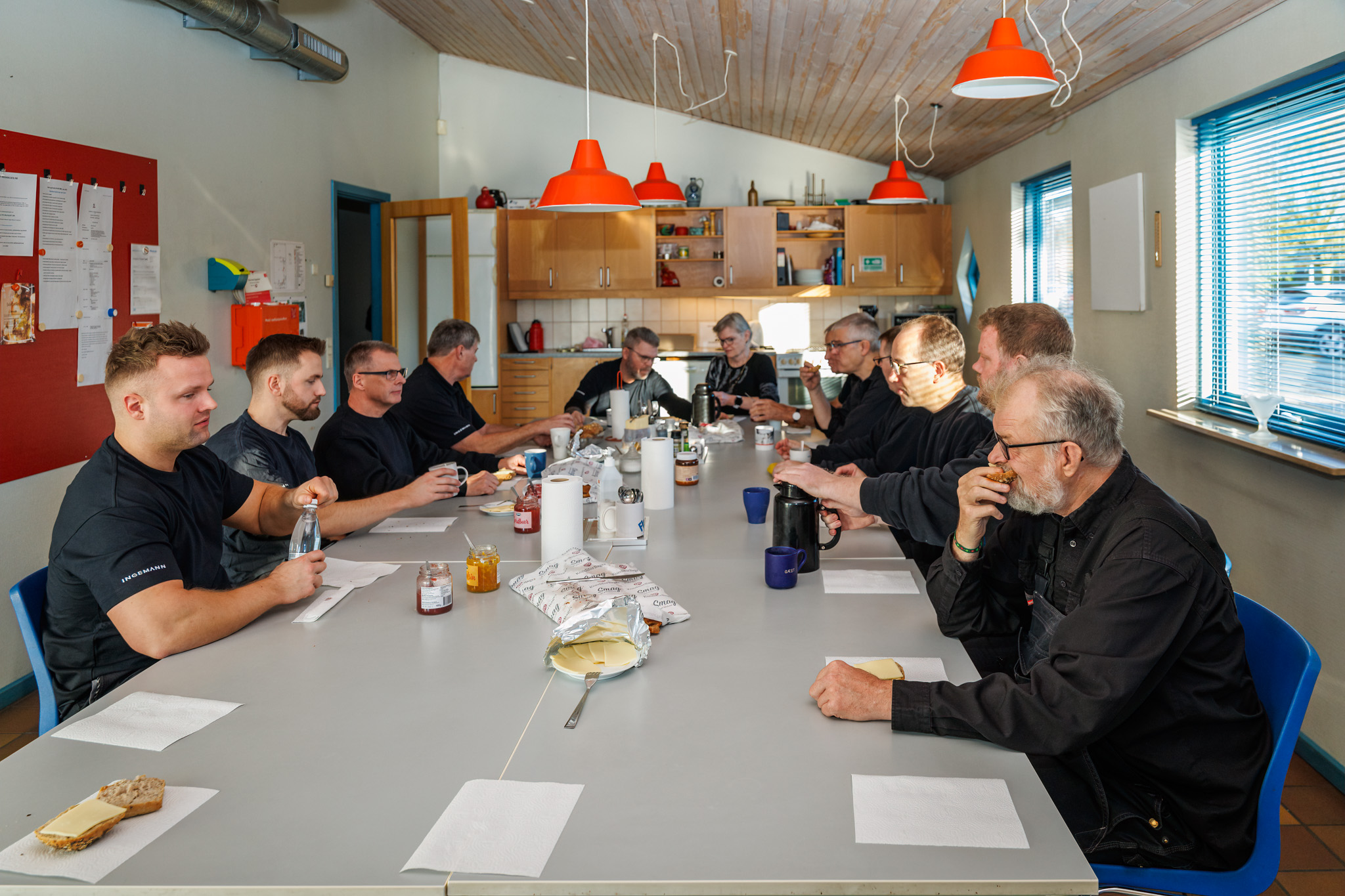 ”Vi har en tradition med at spise morgenmad sammen alle hverdage,” siger adm. direktør Lars Hjulmann og understreger, at det er morgenmad, som Ingemann Maskinfabrik står for.