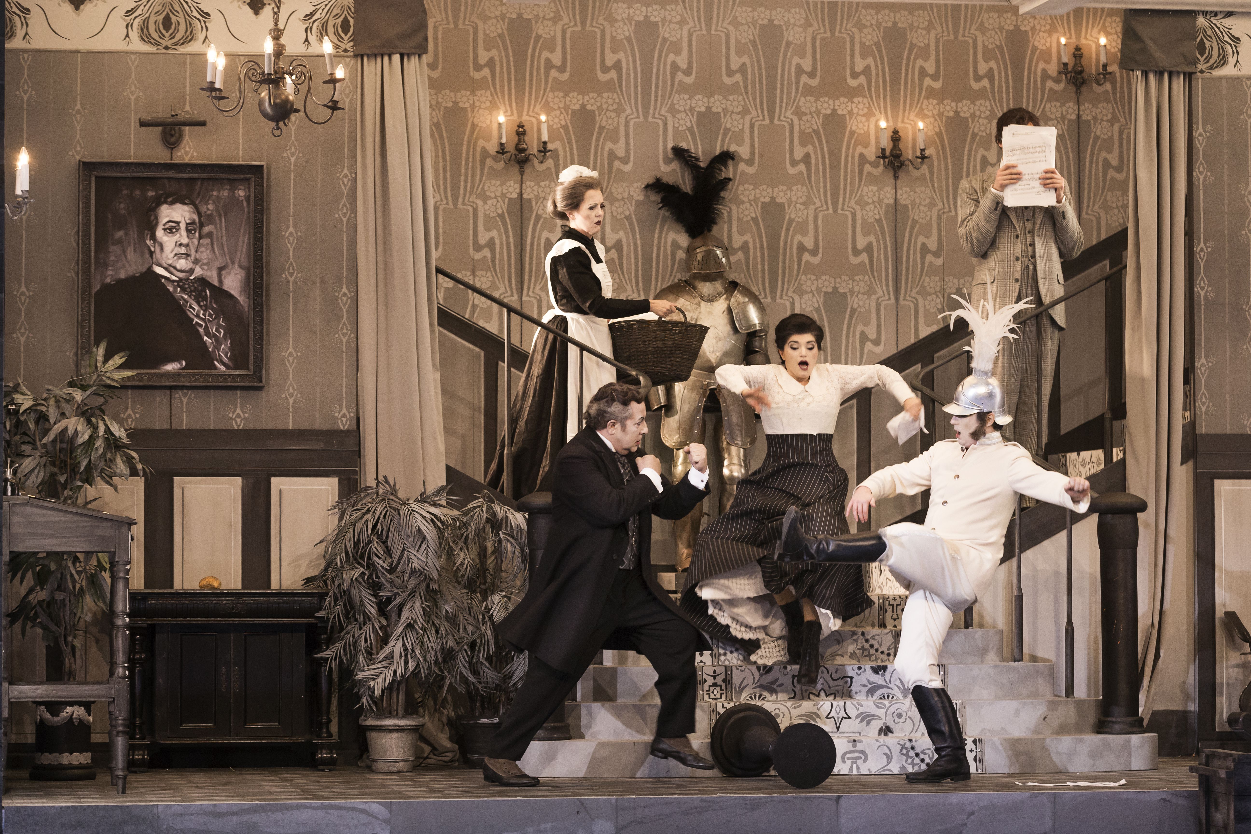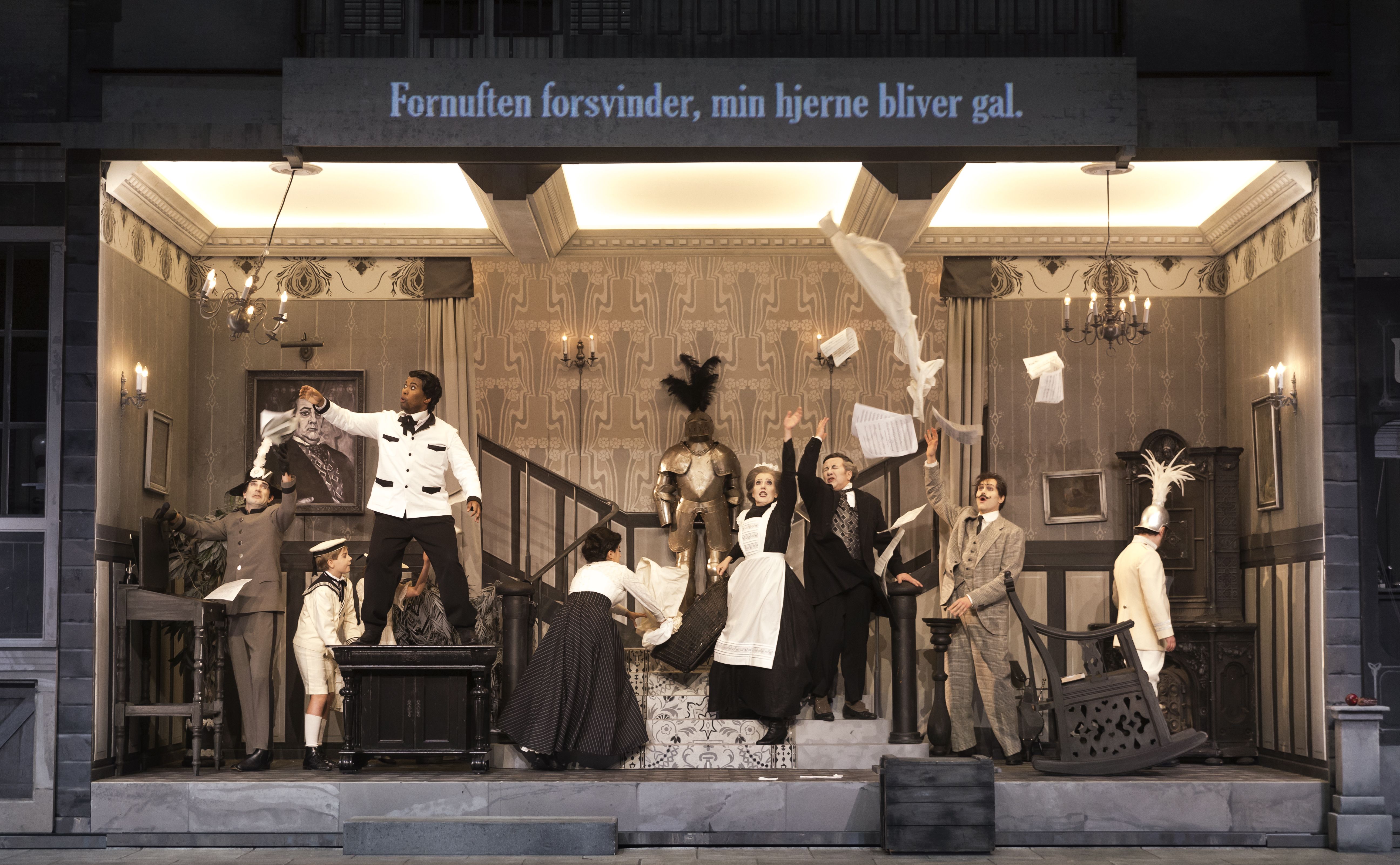 Instruktøren Martin Lyngbo modtog en Reumert for netop denne opsætning, og hans tempofyldte og opfindsomme iscenesættelse udspiller sig i scenograf- og kostumedesigner Rikke Juellunds gråtonede univers, der leger med æstetikken fra de klassiske stumfilm.