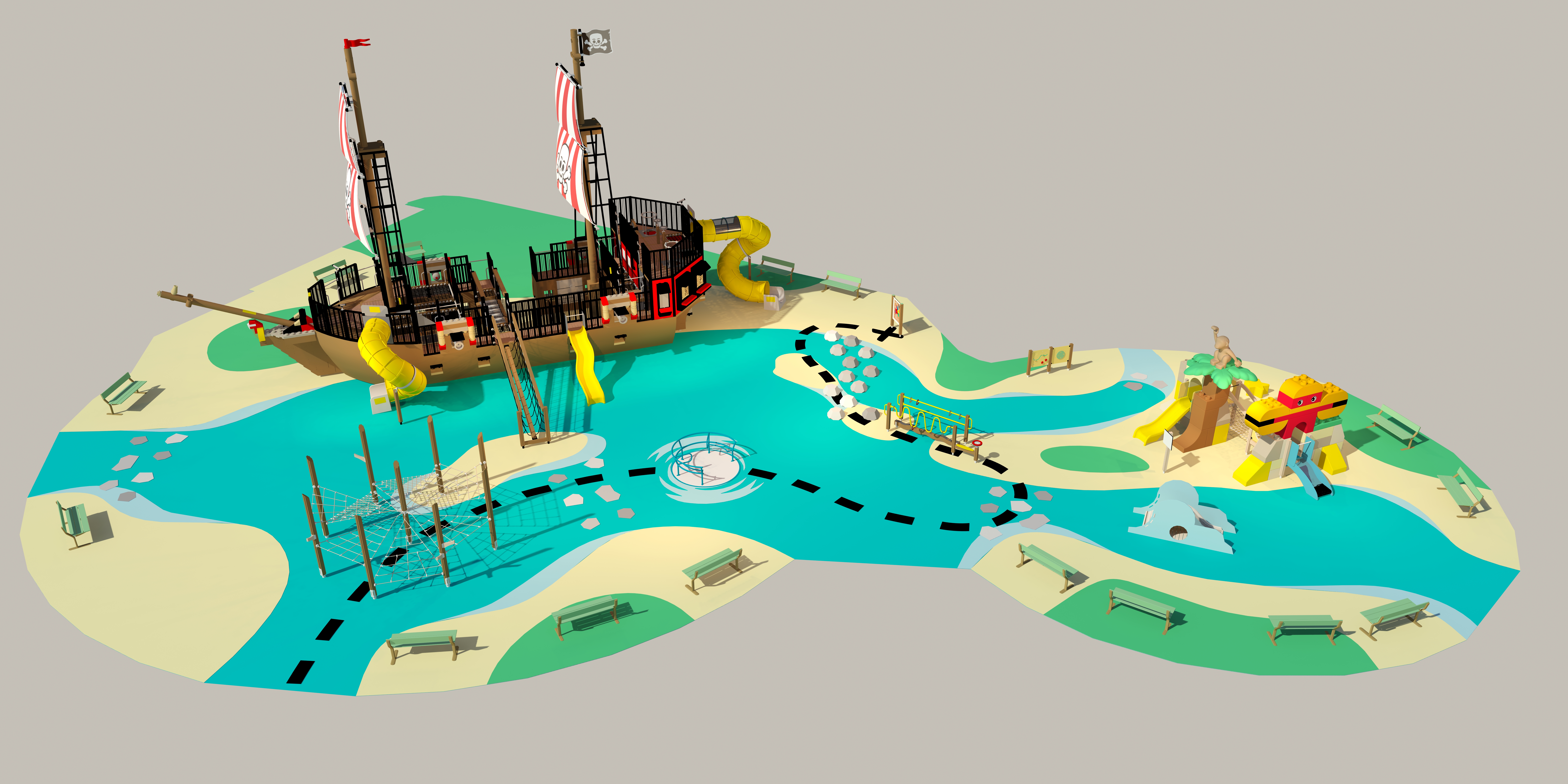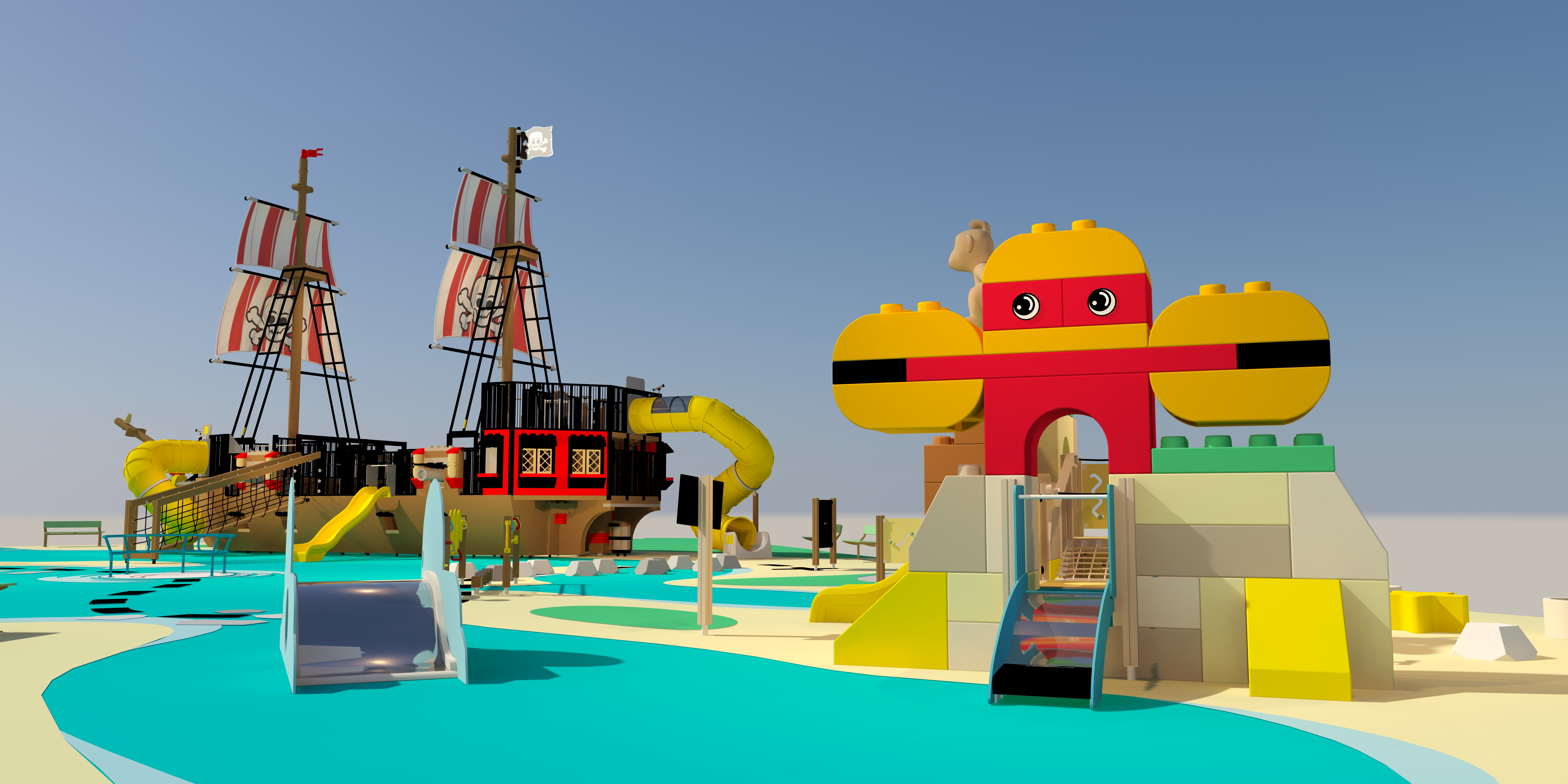 Udover det store piratskib kommer legepladsen til at indeholde en piratø med navnet ”Kongekrabbens Ø”, hvor de allermindste pirater kan klatre, rutsje og lege. Der vil også være masser af seje forhindringer for de lidt større og byggeområder, der indbyder gæster i alle aldre til at være kreative med LEGO klodsen.