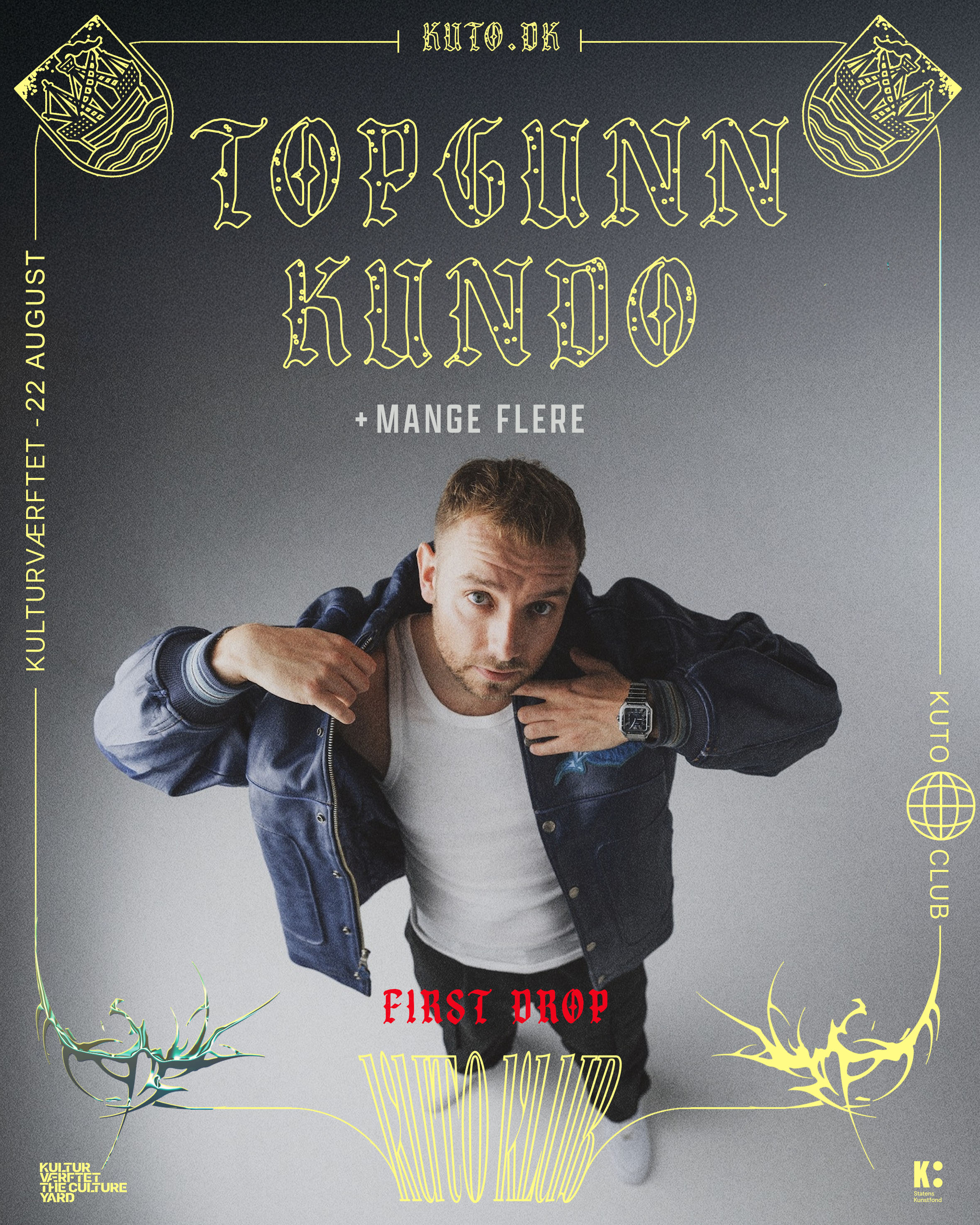 Gør klar til stærke punchlines og højspændt musikalsk energiudladning på pladsen foran Kulturværftet i Kulturhavn Kronborg fredag den 22. august, hvor nogle af Danmarks største hiphop-acts lige nu – TopGunn, Kundo m.fl. – giver koncert. Billetsalget starter fredag den 7. februar kl. 12.00 på kuto.dk