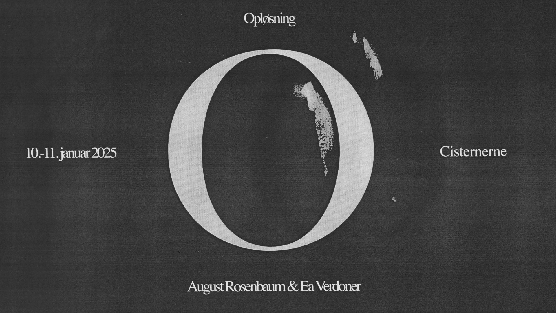 Cisternerne og Strøm præsenterer den audiovisuelle performance OPLØSNING af August Rosenbaum og Ea Verdoner: En tre timers oplevelse, der kombinerer livekoncert, lydinstallation, performance og video i Cisternernes underjordiske rum.