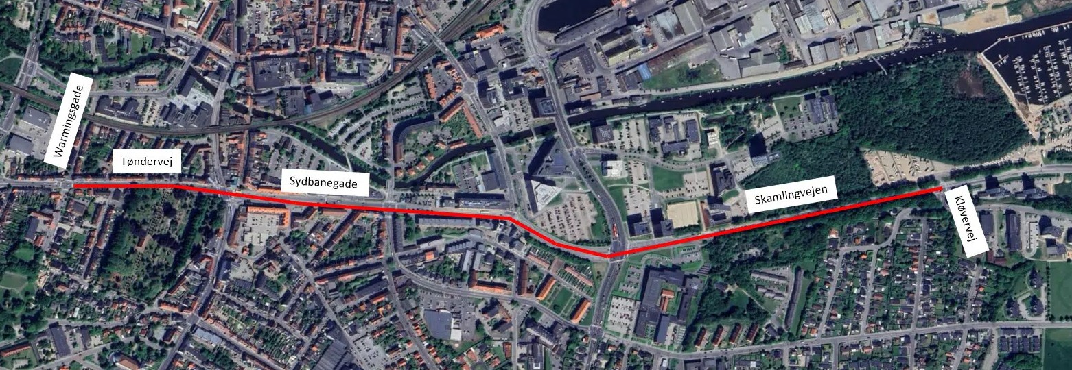 Det er på den knap tre km lange strækningen mellem Kløvervej og Warmingsgade, at TREFOR lægger en ny forsyningsledning i jorden. Arbejdet er allerede startet i den østlige ende og vil frem til sommerferien bevæge sig i retning af Tøndervej.