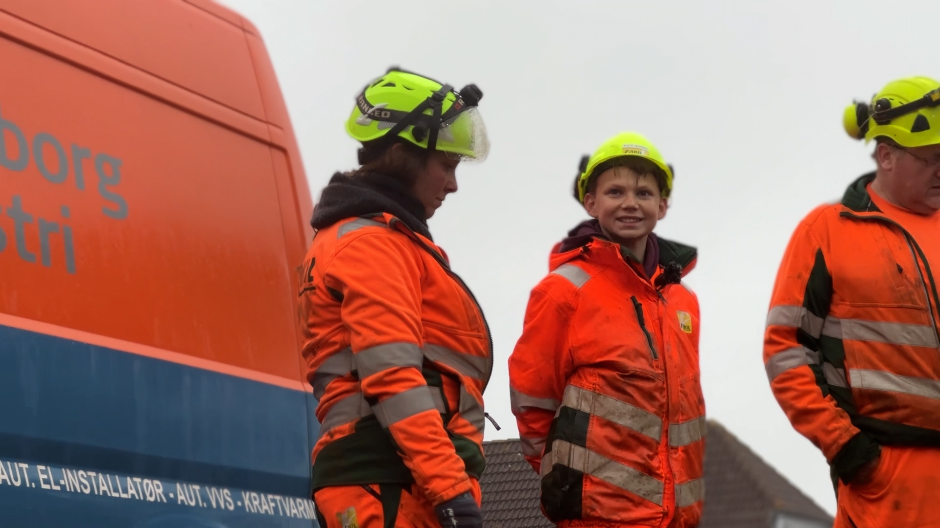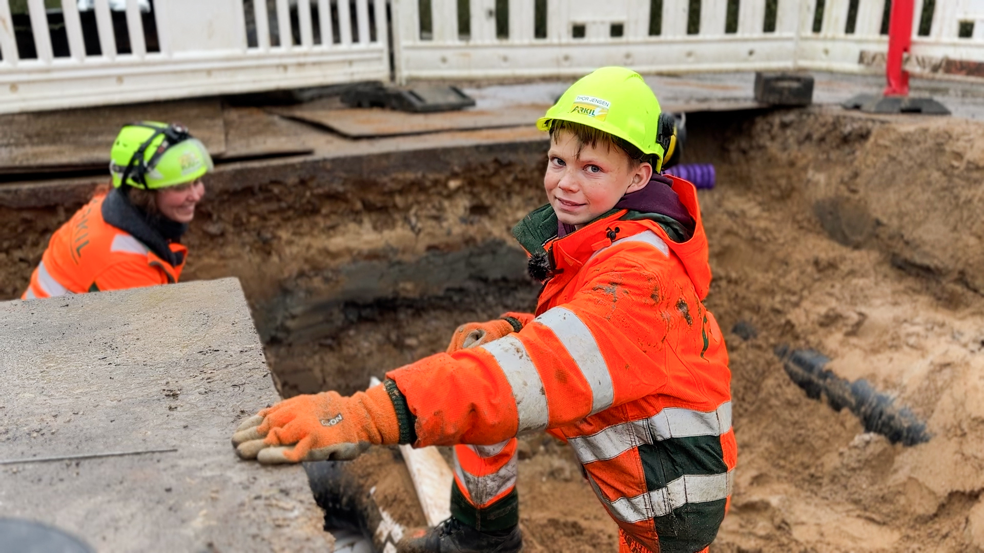 ”Jeg er ligeglad med at det regner. Regn stopper ikke os,” griner Thor, mens han fortæller om sit arbejde med at lægge fjernvarmerør.