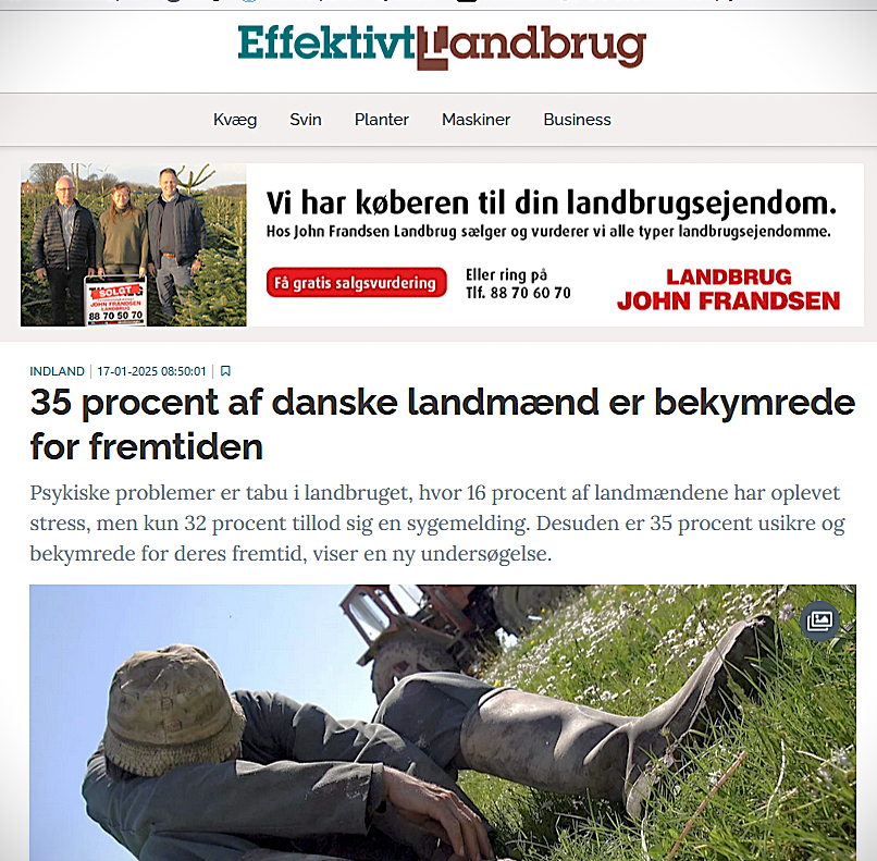 Altså de 87% glade landmænd er kun toppen af et isbjerg, som under vandlinjen er fyldt op med landmænd i mistrivsel og stress.