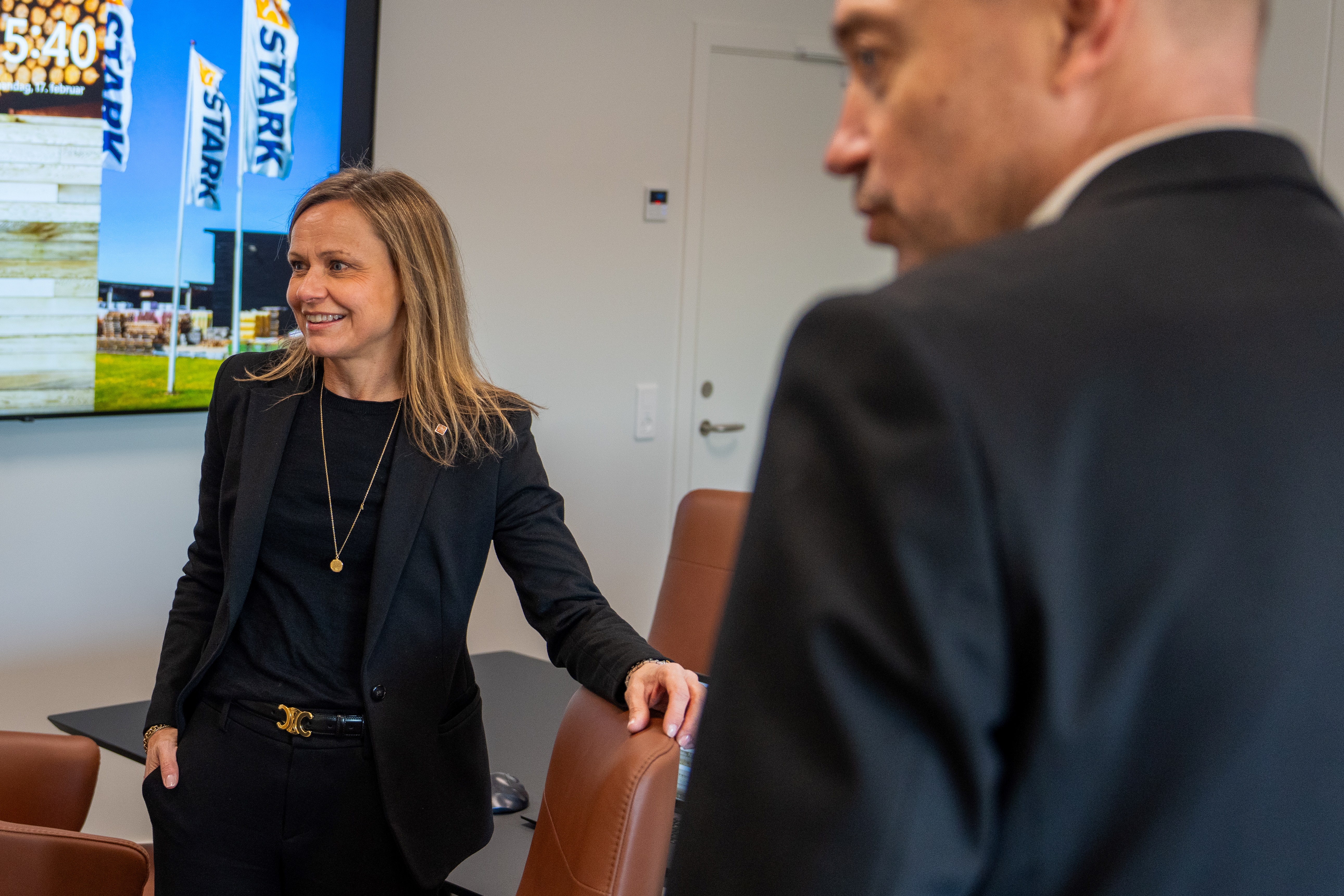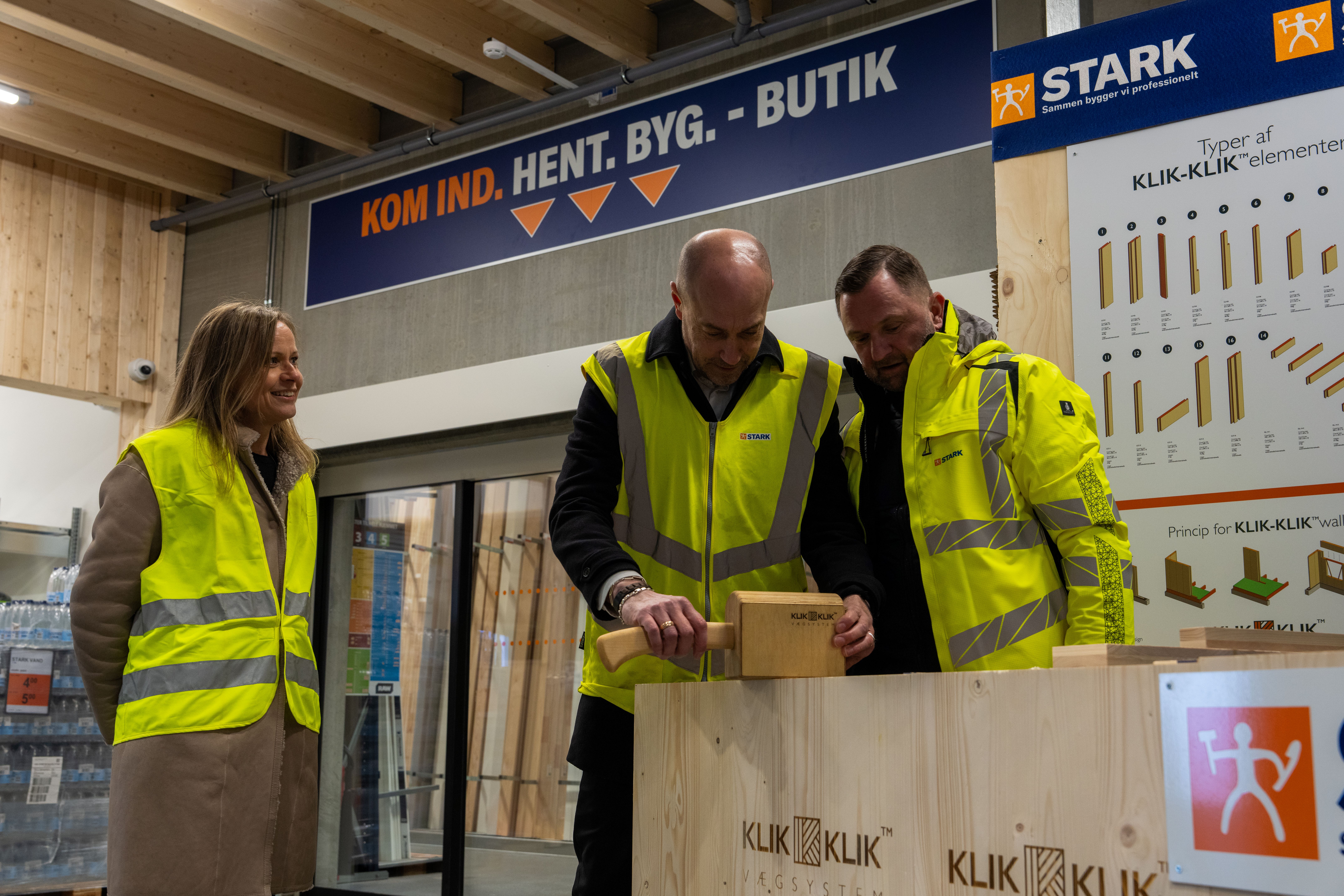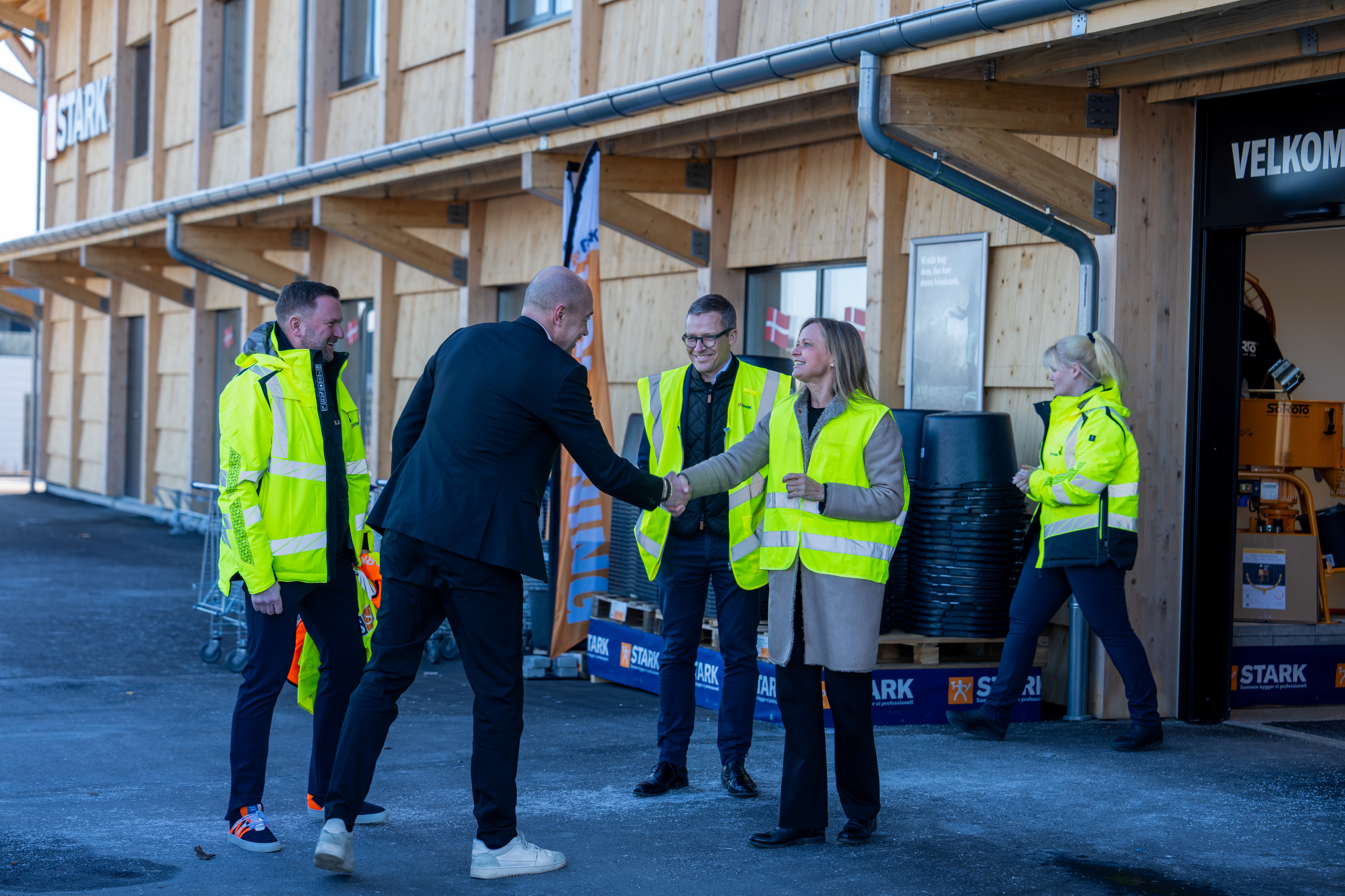 Miljøminister Magnus Heunicke besøgte STARK i Næstved for at drøfte nye krav til fremtidens byggeri og se, hvordan STARK satser på mere klimavenlige byggematerialer, genbrugsprodukter og innovative byggemetoder.